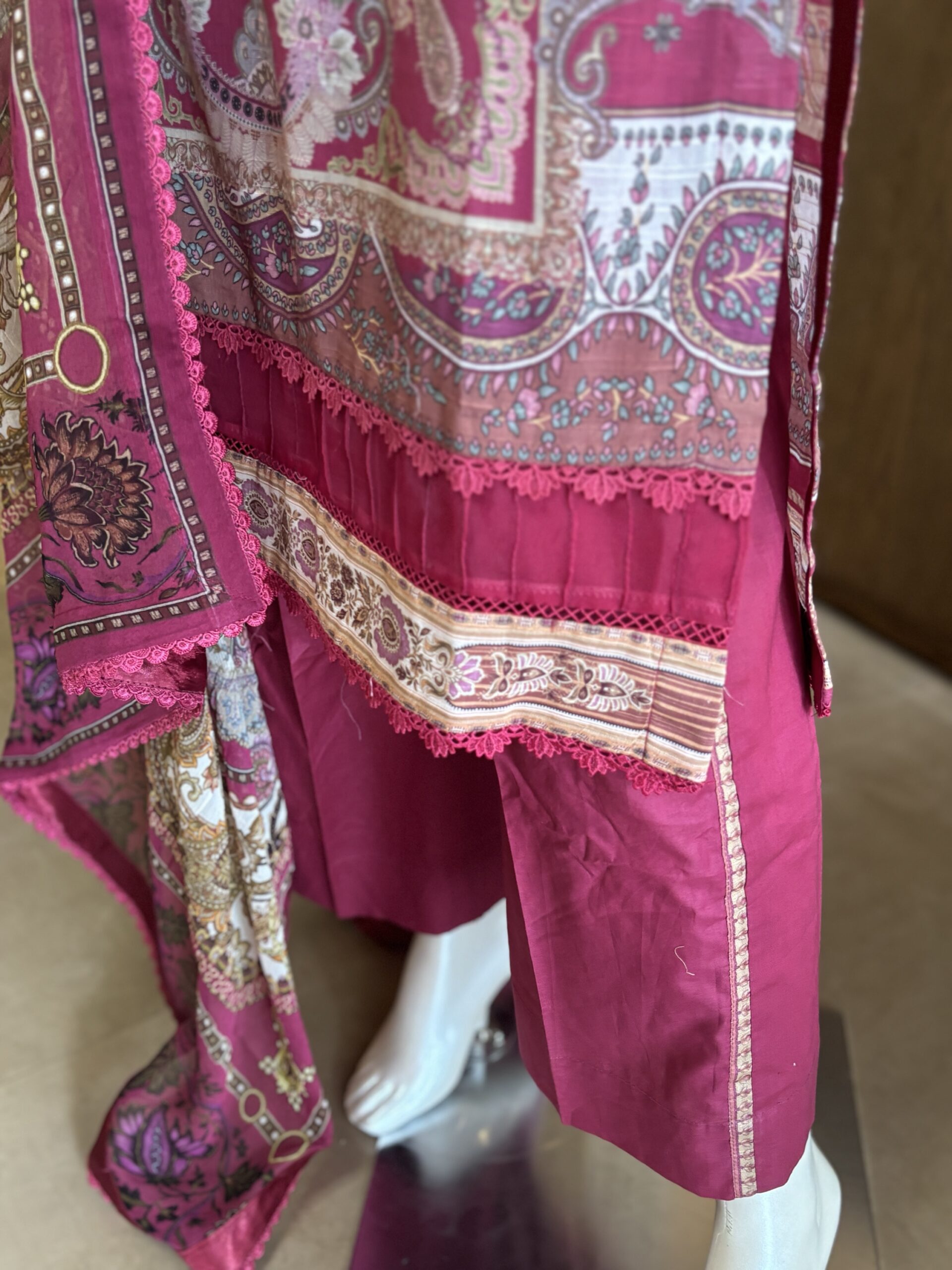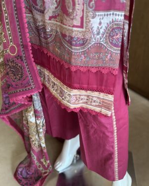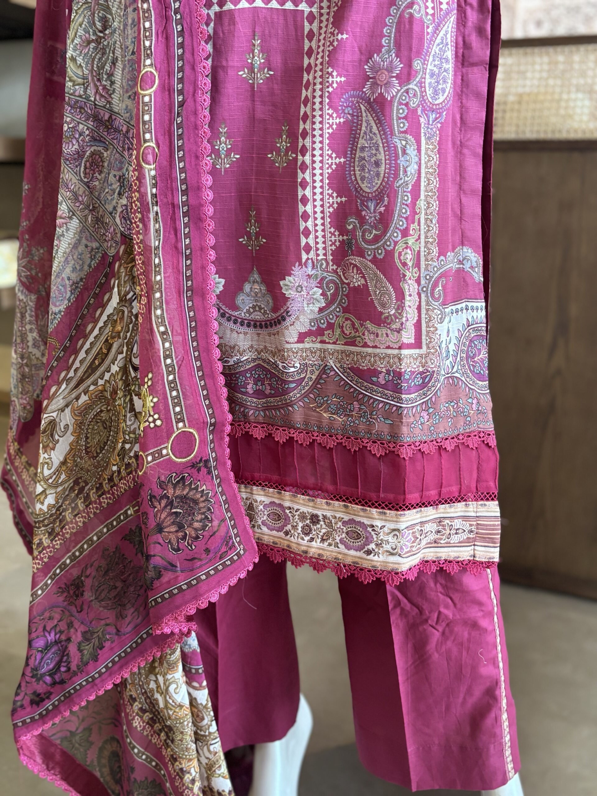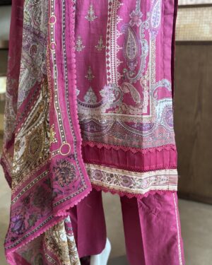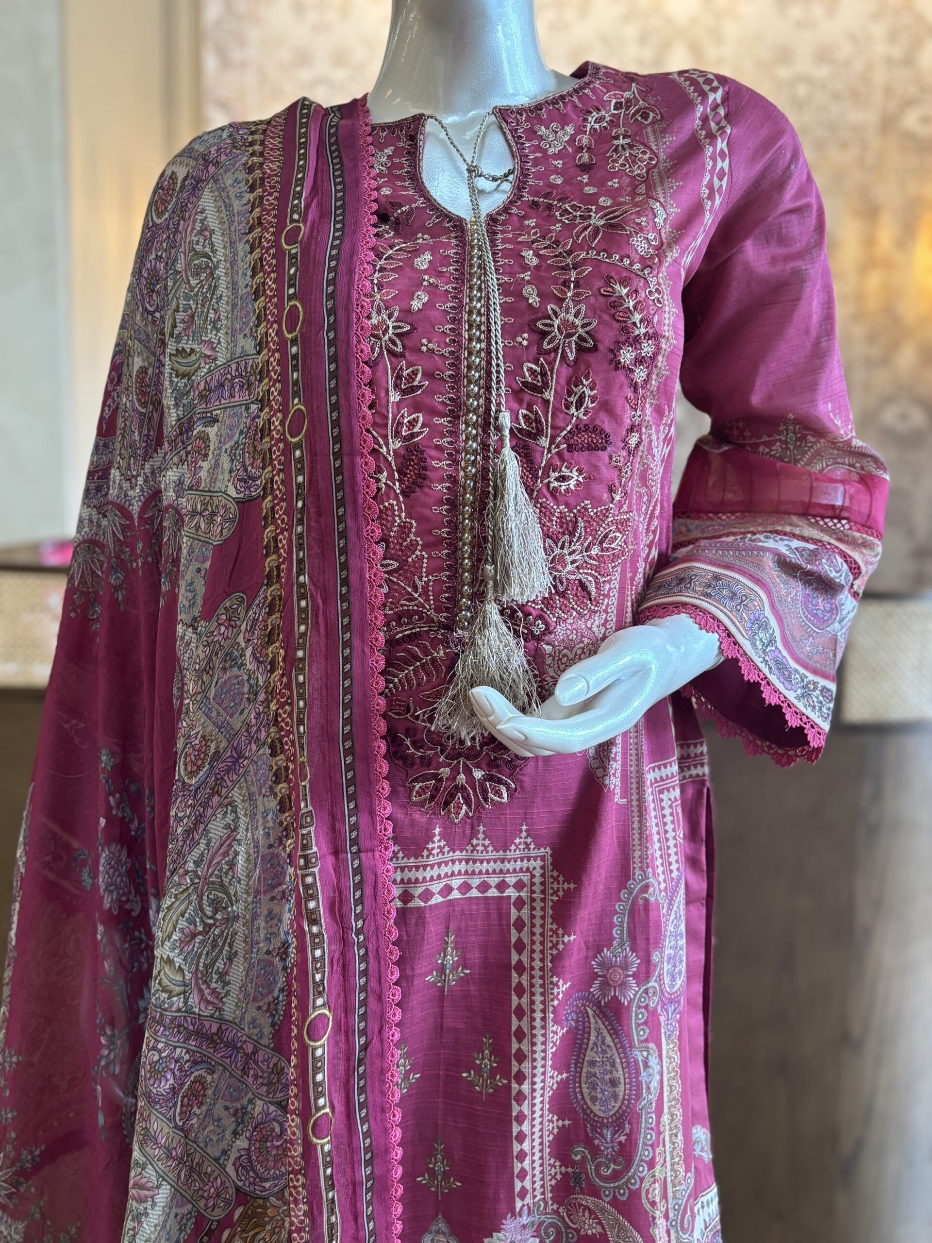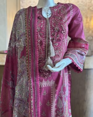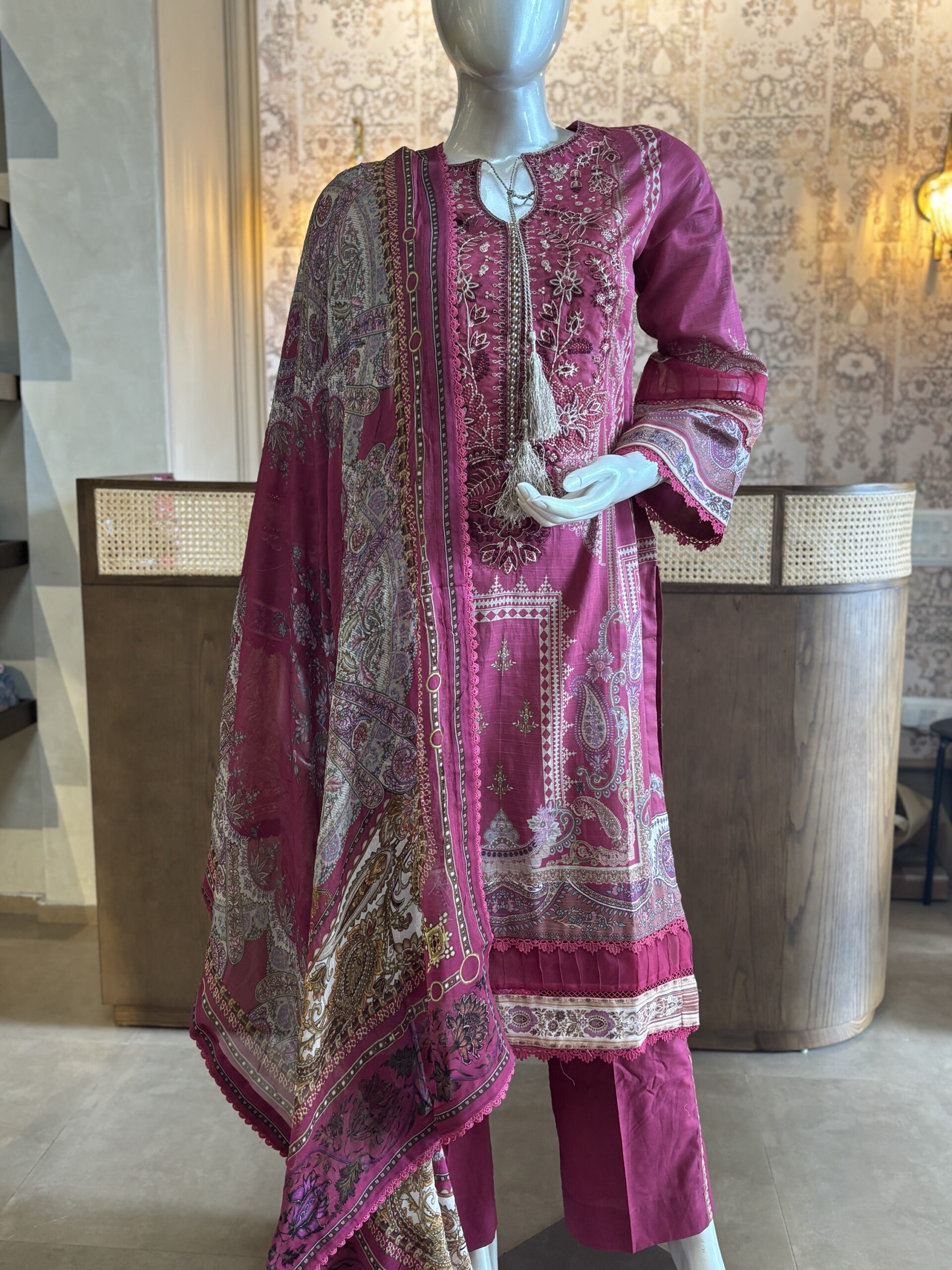 3pc Embroidered Lawn suit with Digital printed Chiffon
