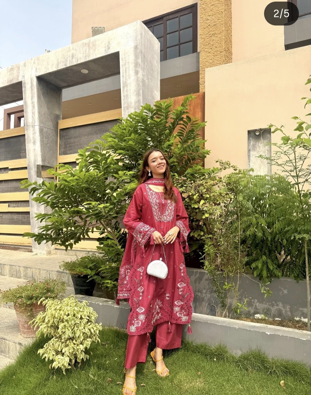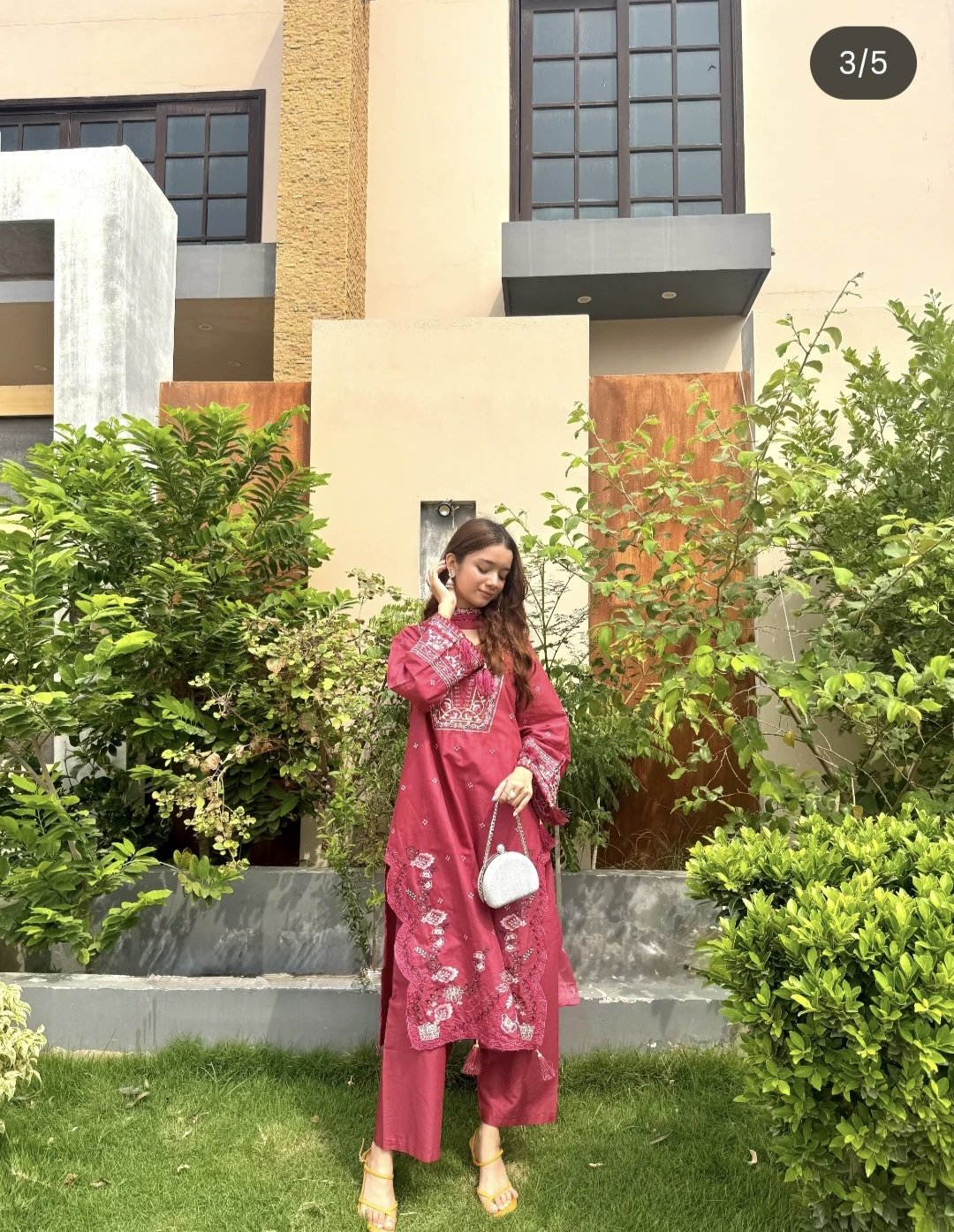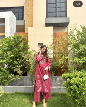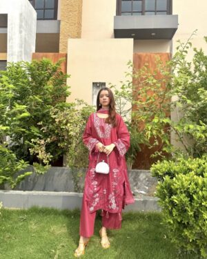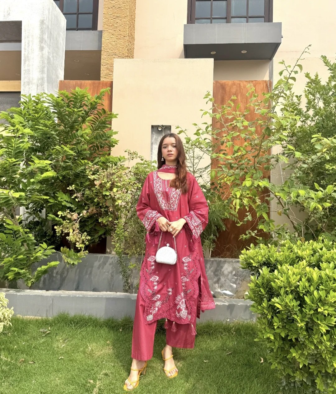 3Pc Embroidered Lawn Suit with Embroidered Chiffon Dupatta.