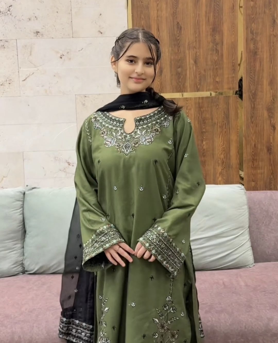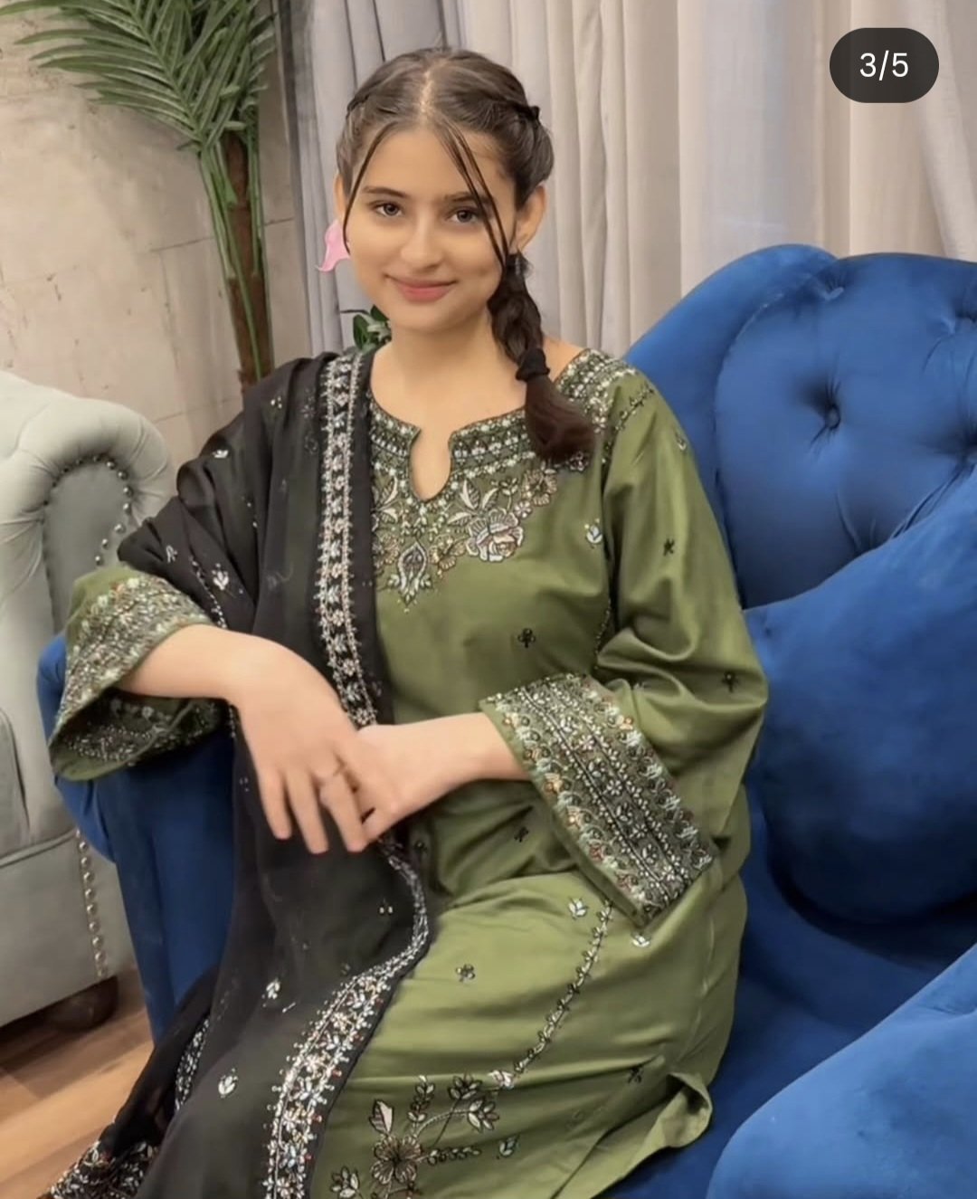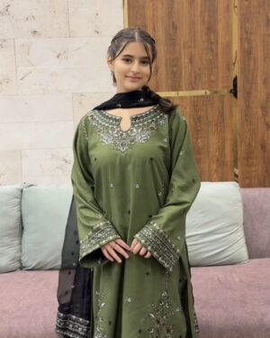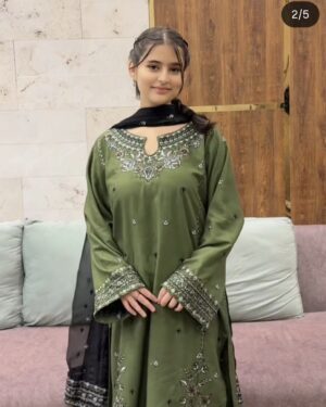 3Pc Embroidered Lawn Suit with Embroidered Chiffon Dupatta.