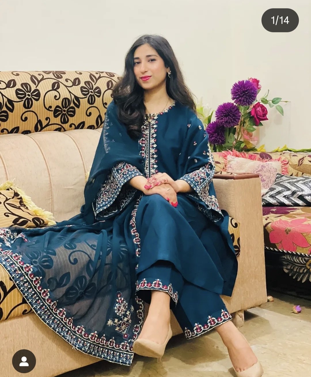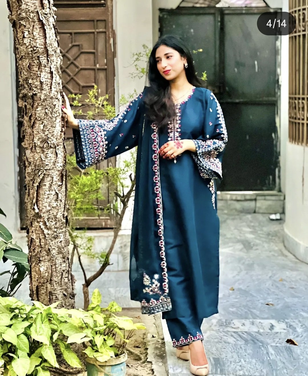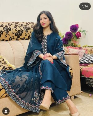3Pc Embroidered Lawn Suit with Embroidered Chiffon Dupatta.