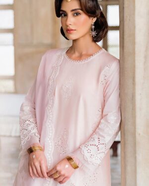 Expertly crafted and designed, the PEACH BLUSH-3PC EMBROIDERED LAWN SUIT is a must-have for any fashion-forward individual. The intricate lawn embroidered applique front and embroidered sleeves add a touch of elegance, while the cambric dyed trouser and 100% cotton jacquard dupatta provide comfort and style. Don’t miss the 200″ embroidered patti for a complete and effortless look.