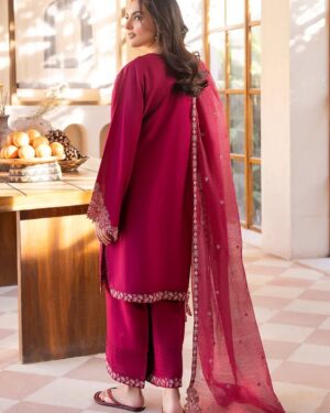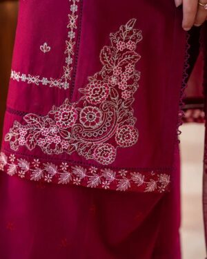 Fabric: Cambric3 PC Embroidered Cambric Shirt with Dyed Embroidered Trouser and Khaddi Net Embroidered Dupatta