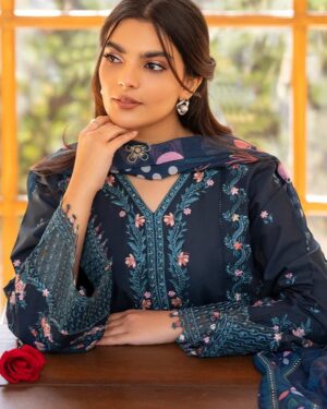 Embroidered Cambric ShirtEmbroidered Cambric TrouserPrinted Chiffon Dupatta