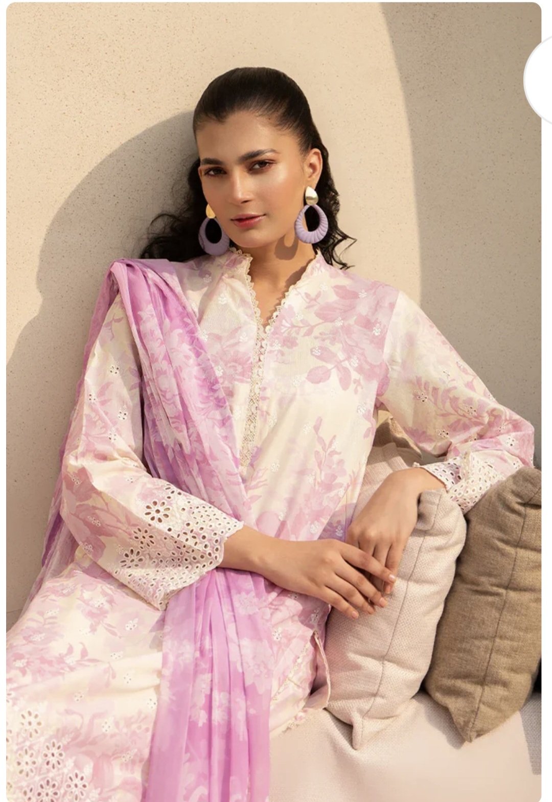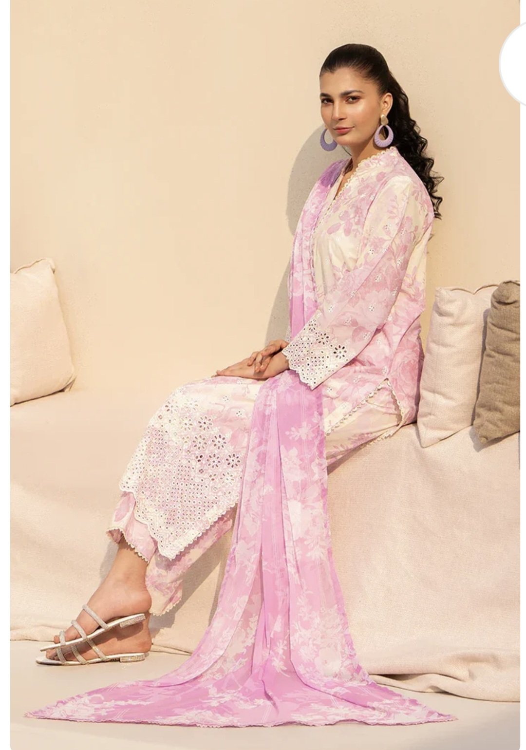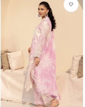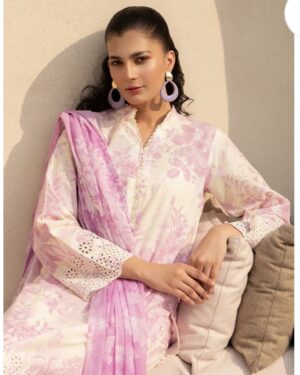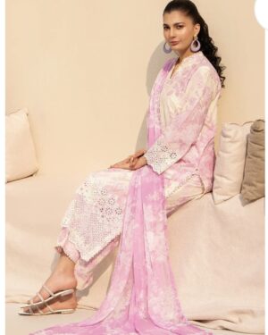 CambricPrinted Embroidered Cambric Shirt, Printed Cambric Trouser with Chiffon Printed Dupatta