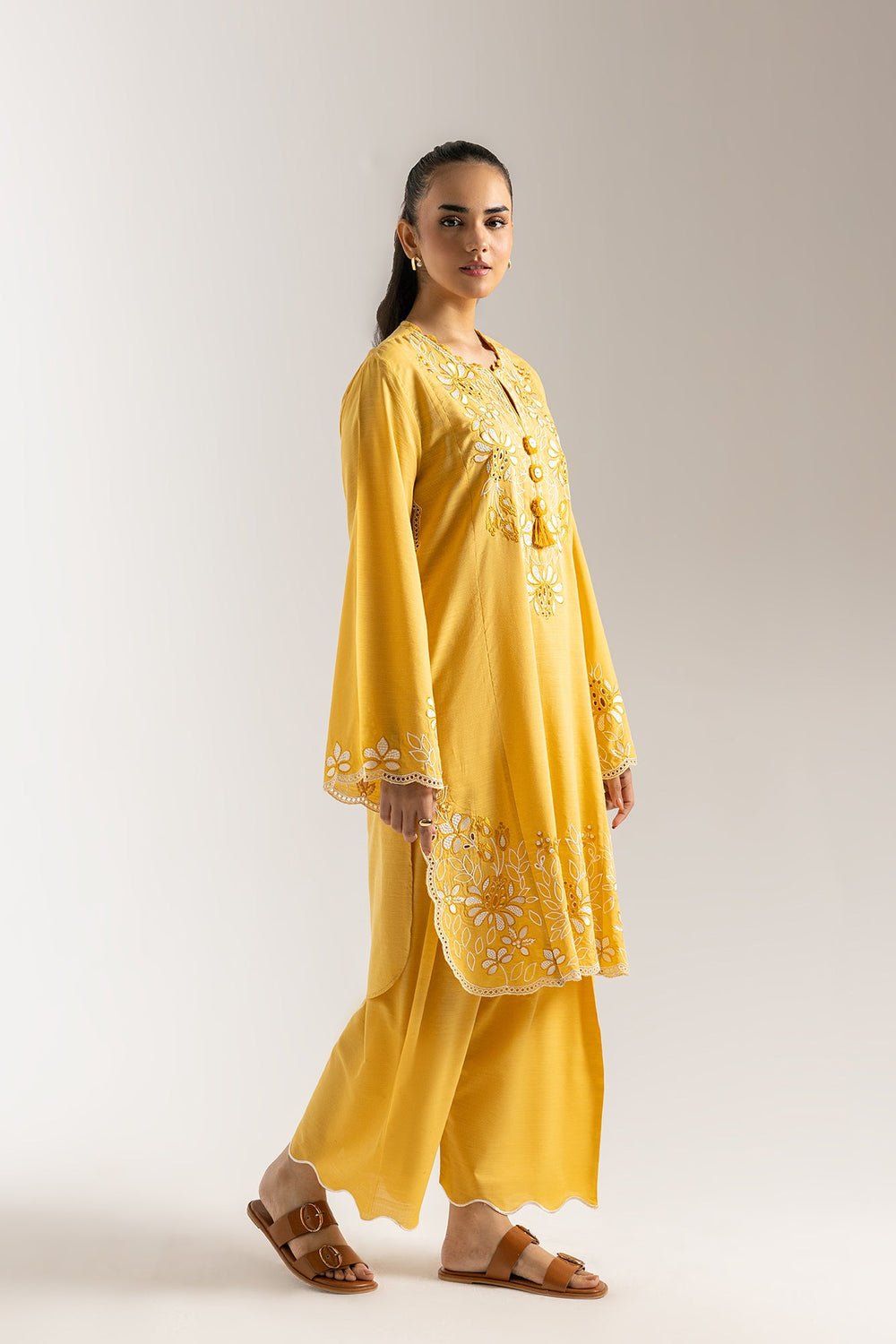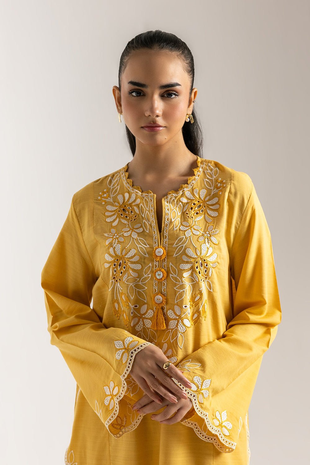 SHIRT – RELAX FIT – ROUND NECK WITH SLIT – FULL SLEEVES – SCALLOPED HEM – REGULAR LENGTH