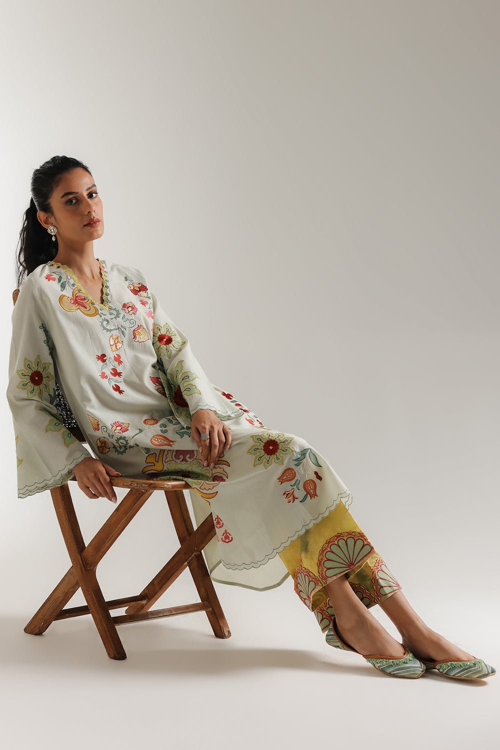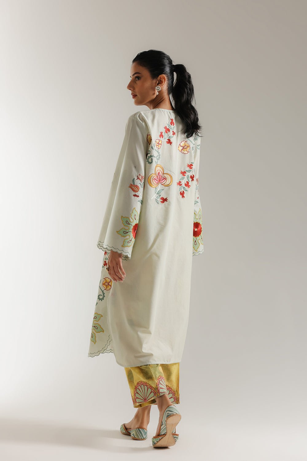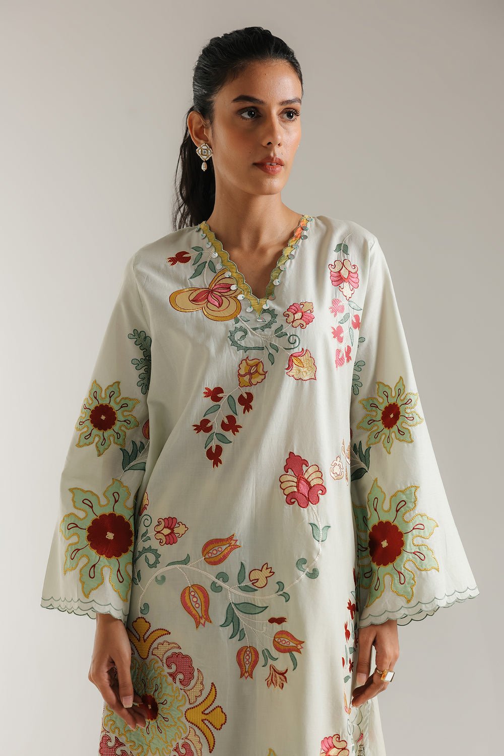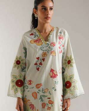 SHIRT – A LINE FIT – SCALLOPED V NECK – FULL SLEEVES – LONG LENGTH