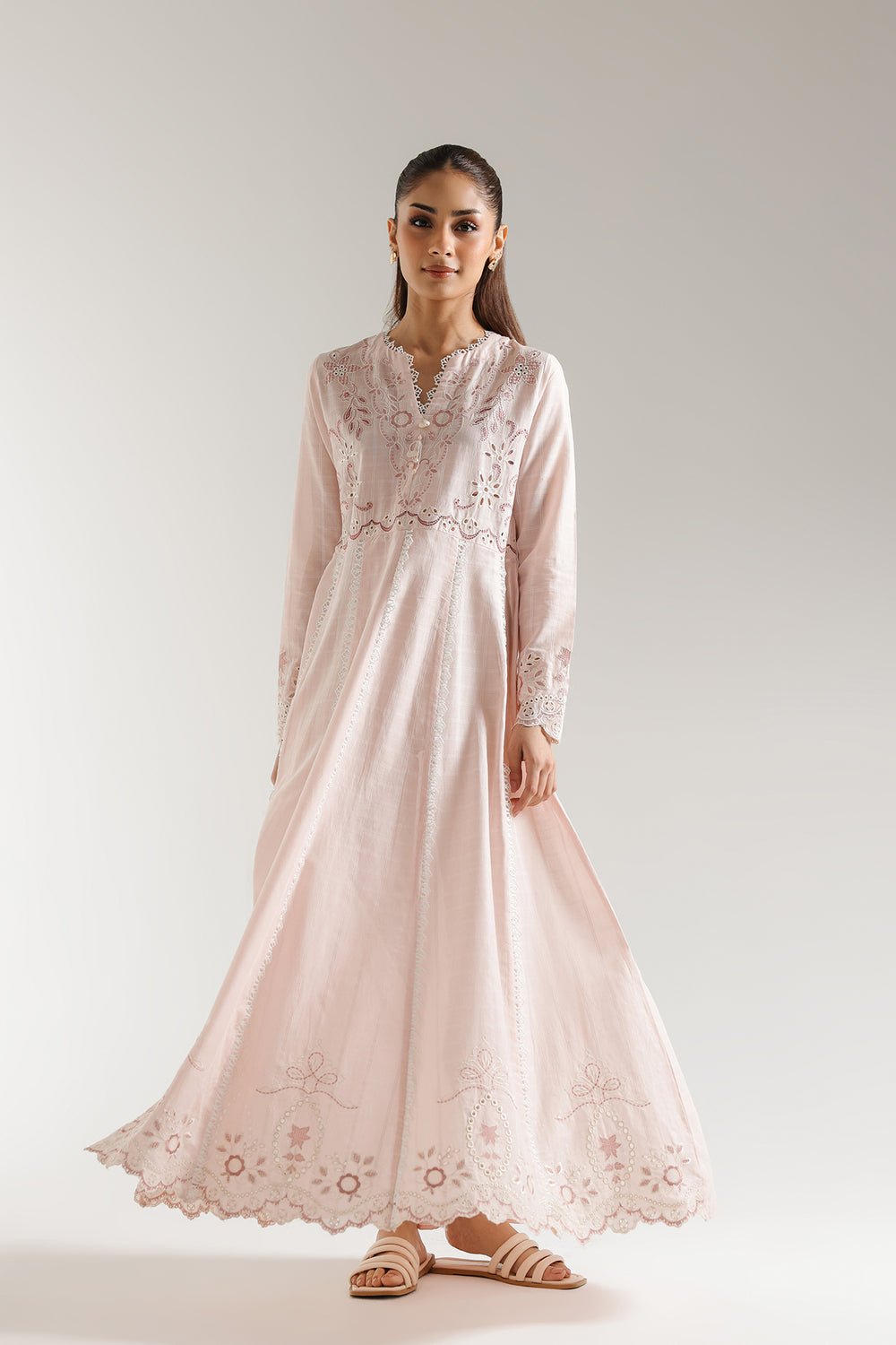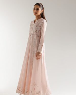 SHIRT – A LINE FIT – ROUND NECK WITH V SLIT – FULL SLEEVES – FLARED HEM – LONG LENGTH.