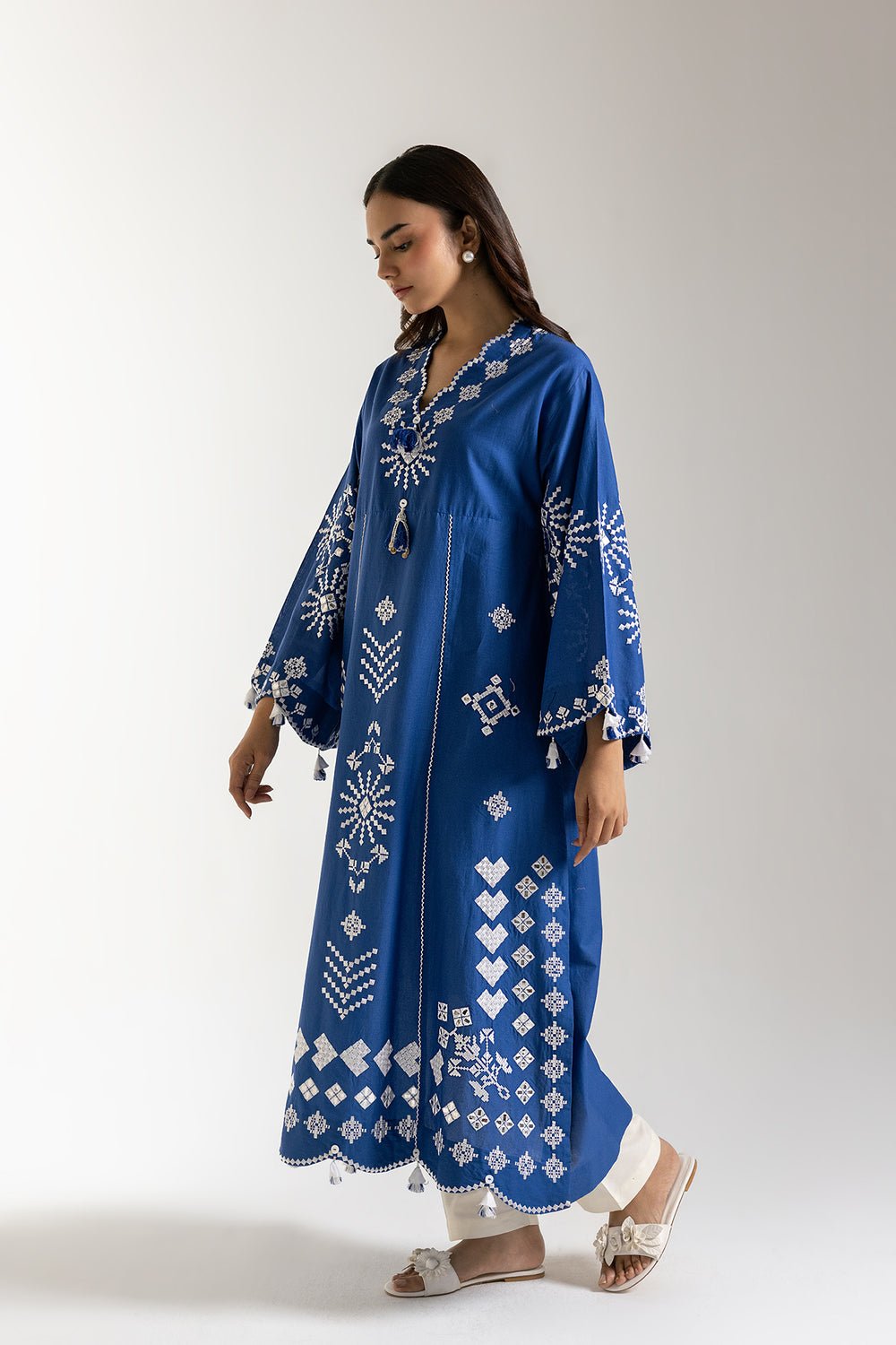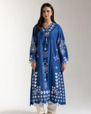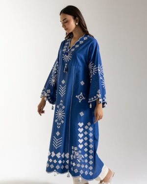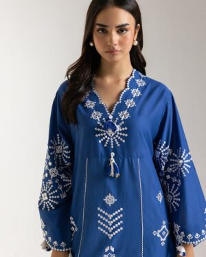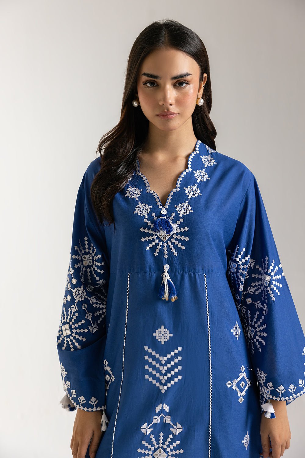 SHIRT – A LINE FIT – SCALLOPED V NECK – FULL SLEEVES – LONG LENGTH.