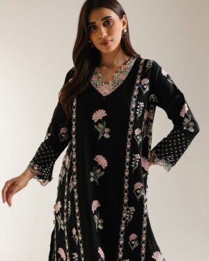 SHIRT – A LINE FIT – V NECK – TAPERED SLEEVES – SCALLOPED HEM – LONG LENGTH