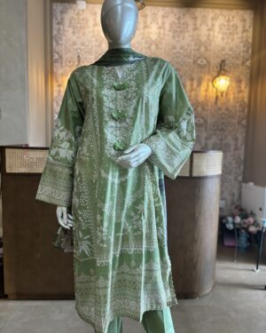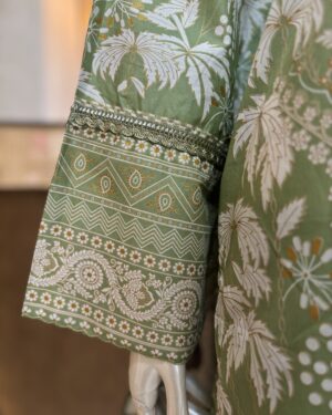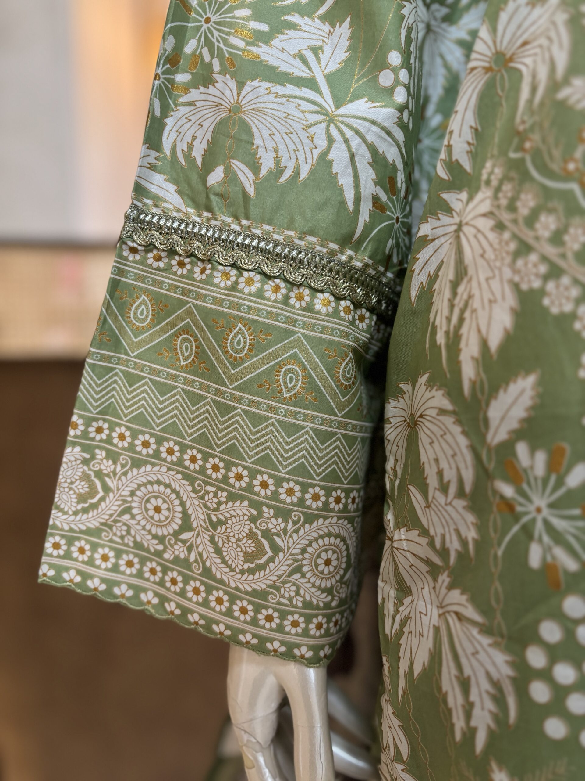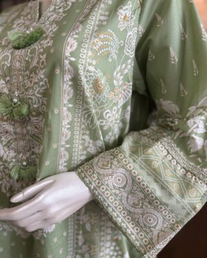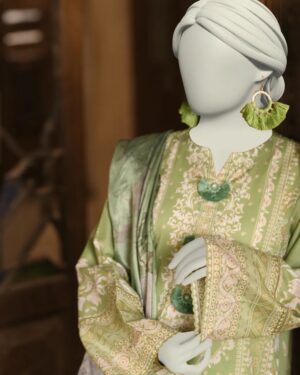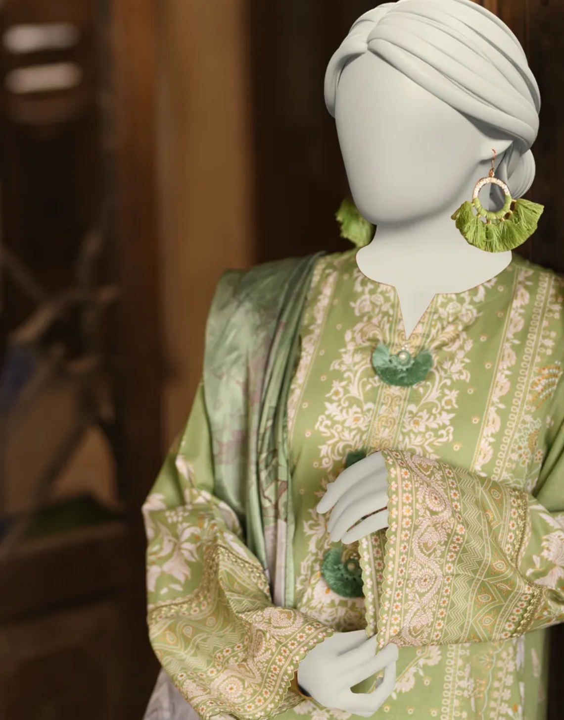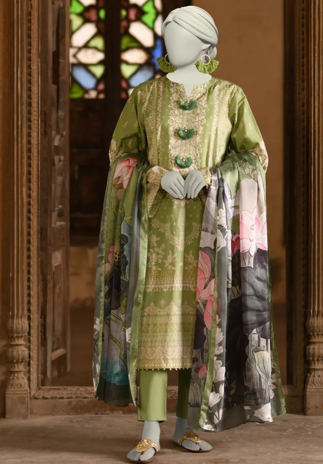 Collection: Gold & Printed Lawn Shirt, Dyed Lawn Trouser, Digital Printed Silk Dupatta
