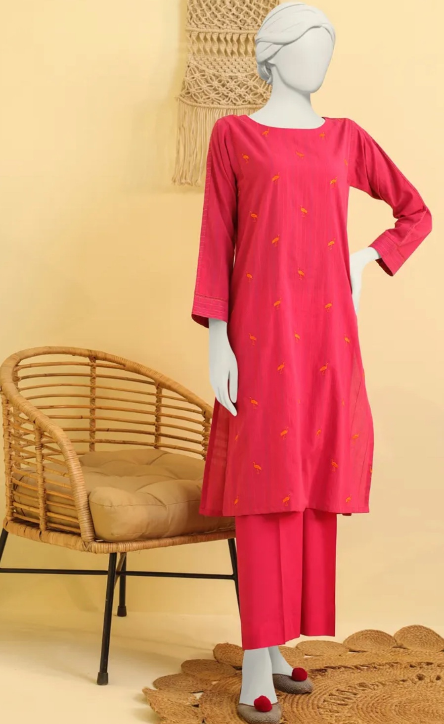 J0032 JUNAID JAMSHED PINK JACQUARD KURTI