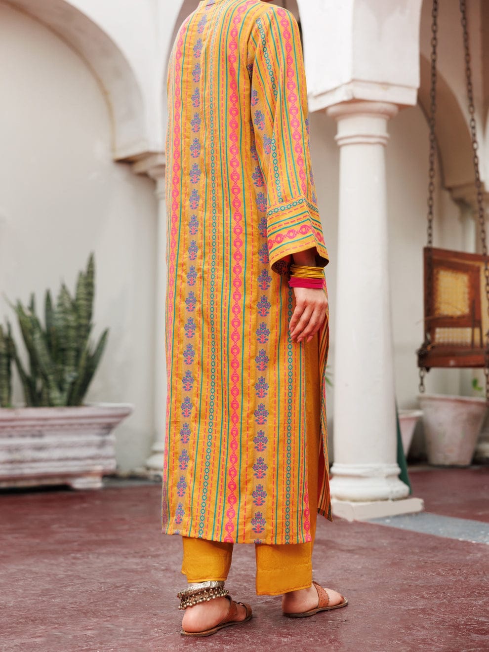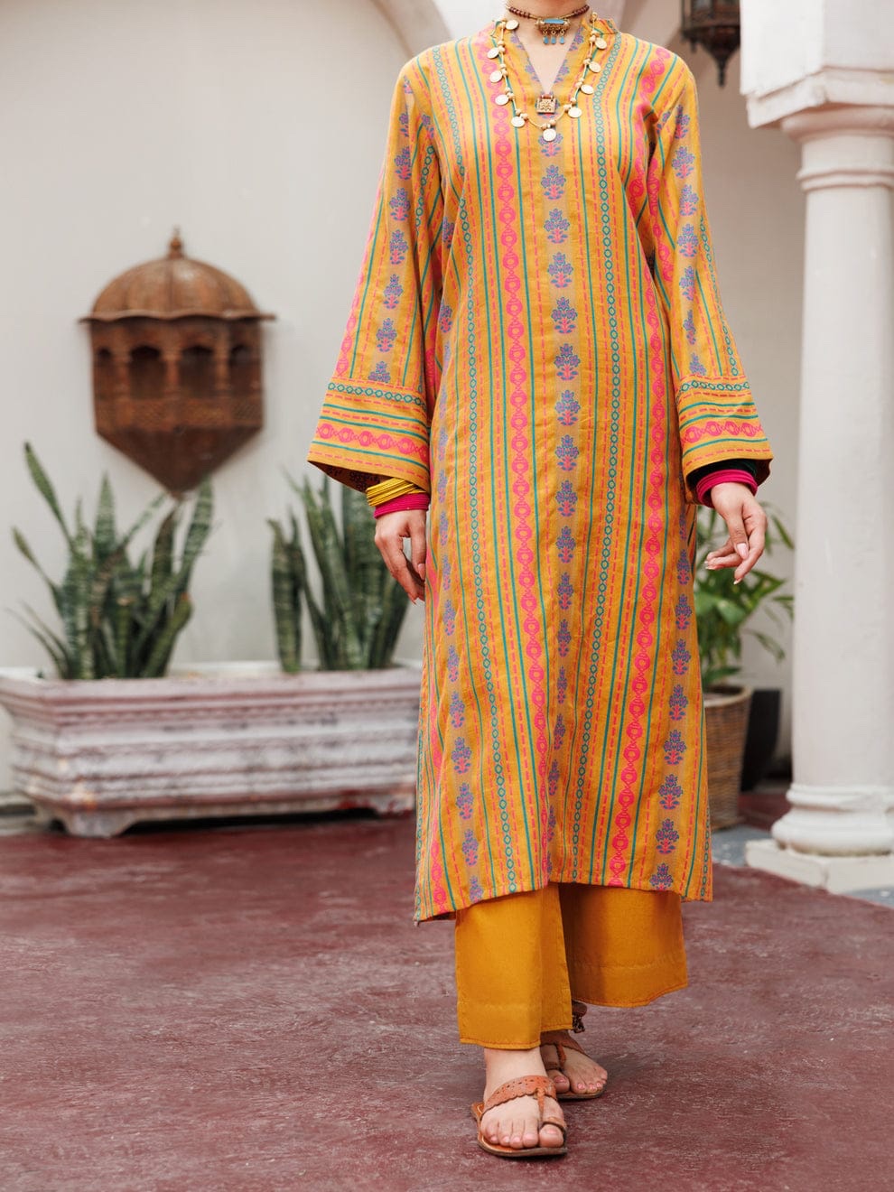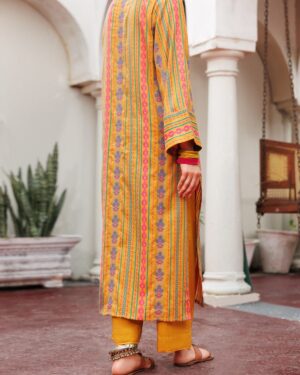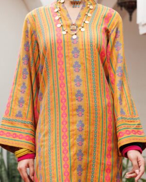 Yarn dyed long shirt with Metal brooch Detail on neckline