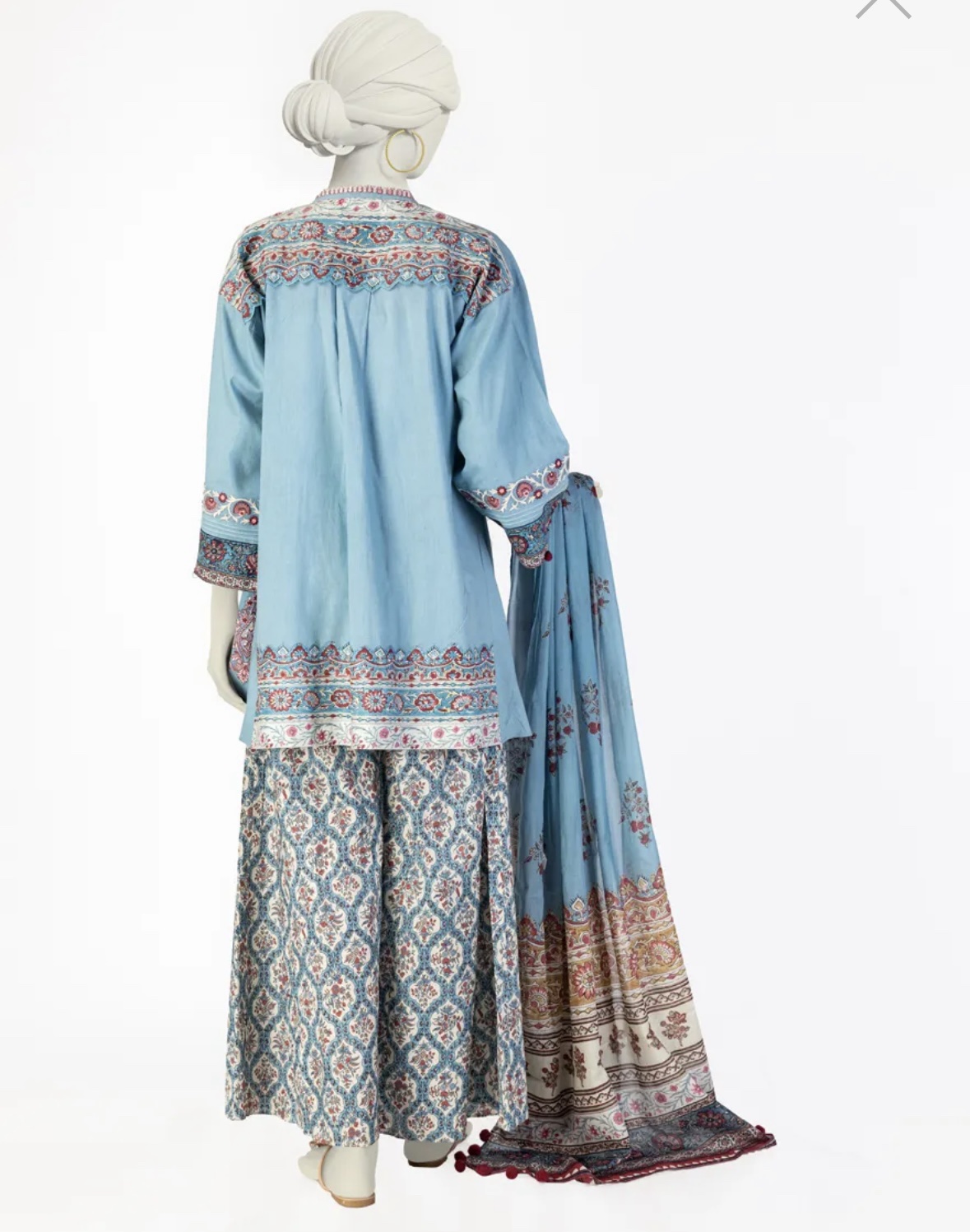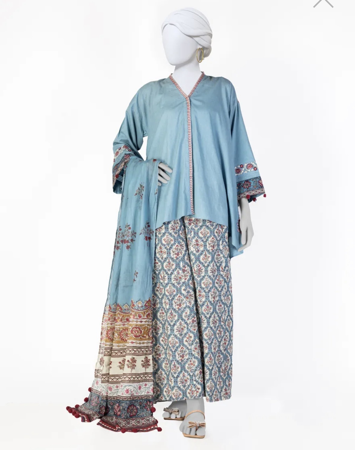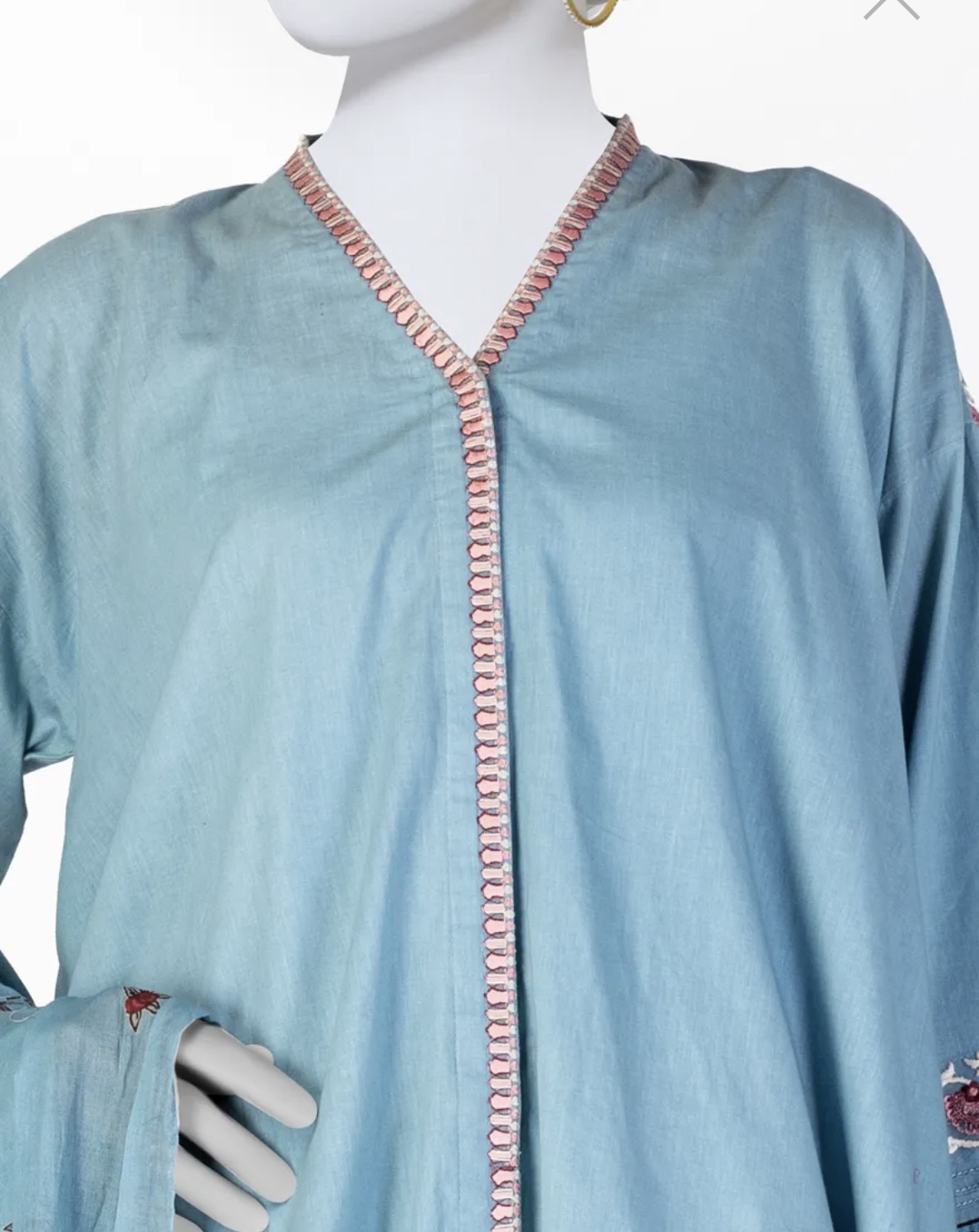 Embroidered Lawn Shirt With Digital Printed Border, Printed Lawn Trouser, Digital Printed Lawn Dupatta