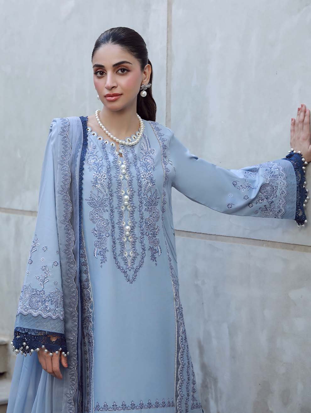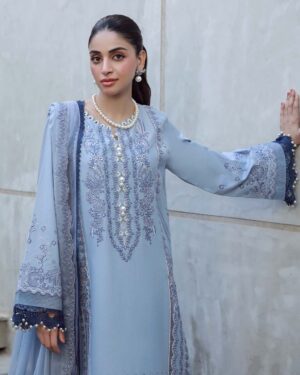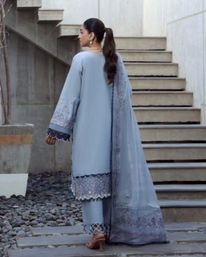 3M Embroidered Lawn Shirt 2.5M Embroidered Bamber Chiffon Dupatta 2.5M Dyed Cotton Trouser 1.7 Yards Organza Emb