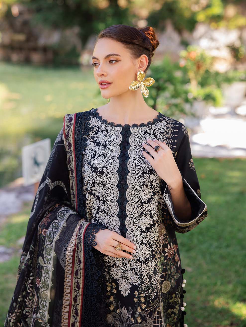 1PC Organza Embroidered Neckline
