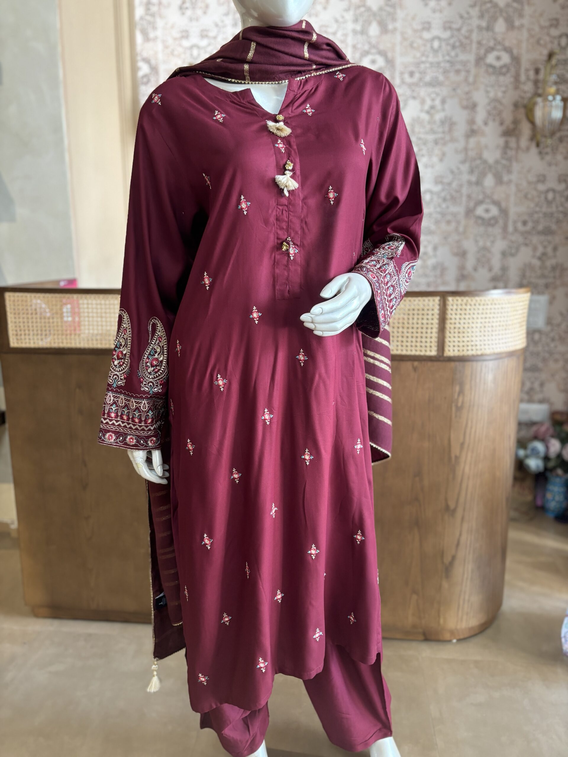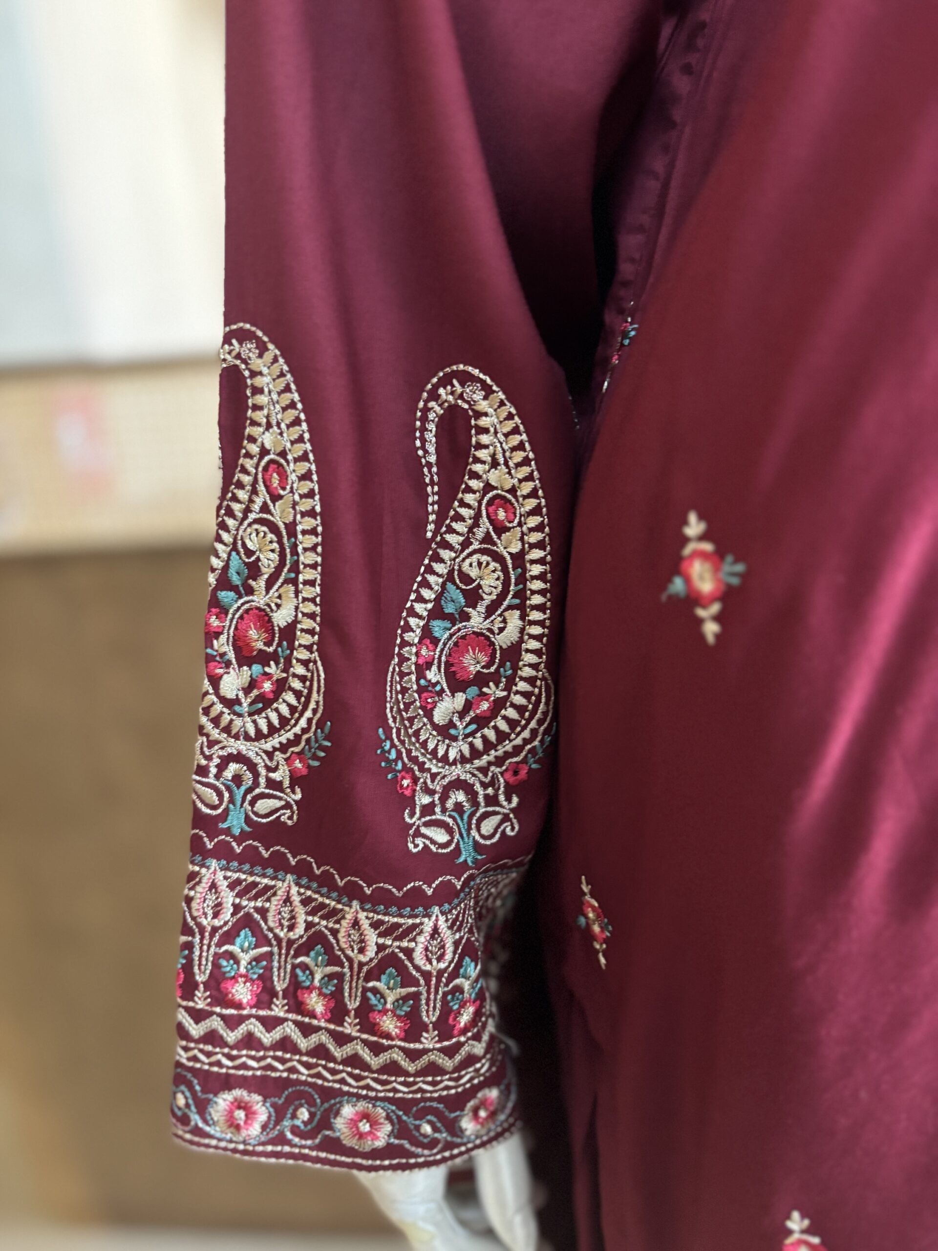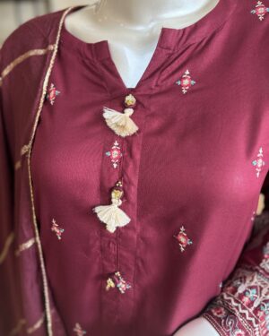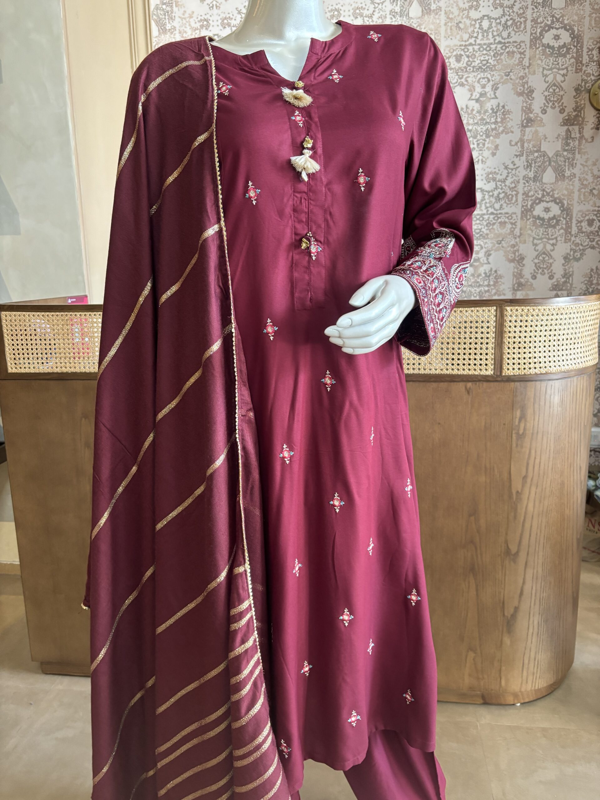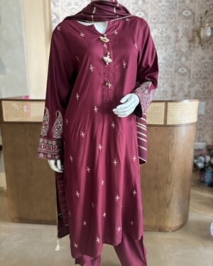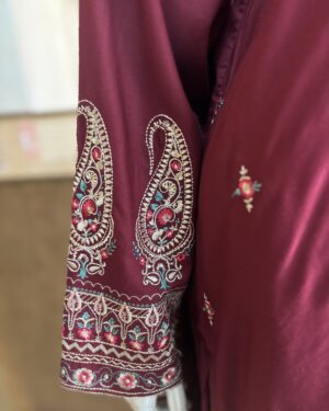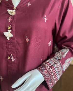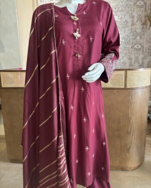 Collection: Embroidered Linen Shirt And Yarn Dyed Shawl With Linen Trouser