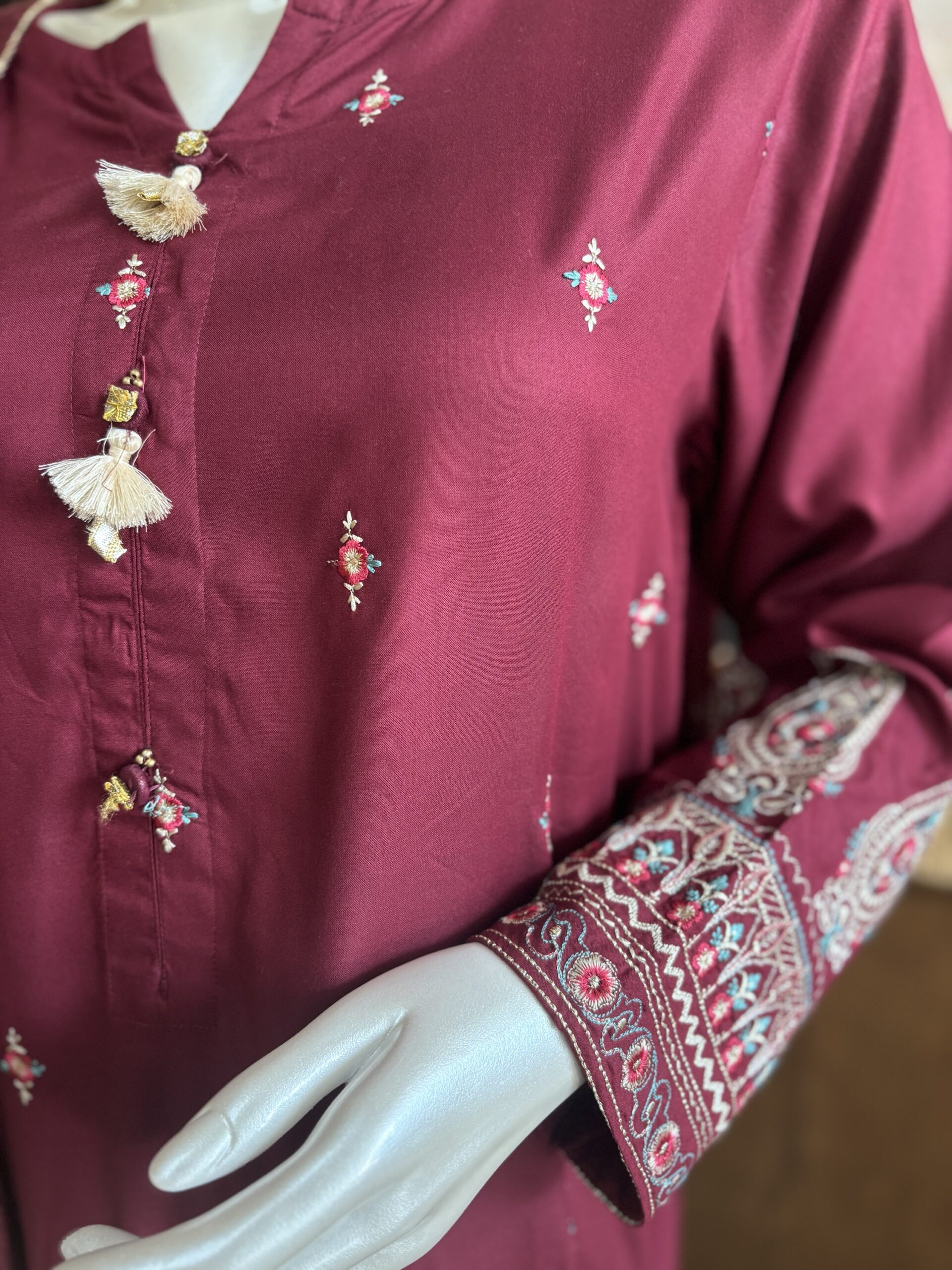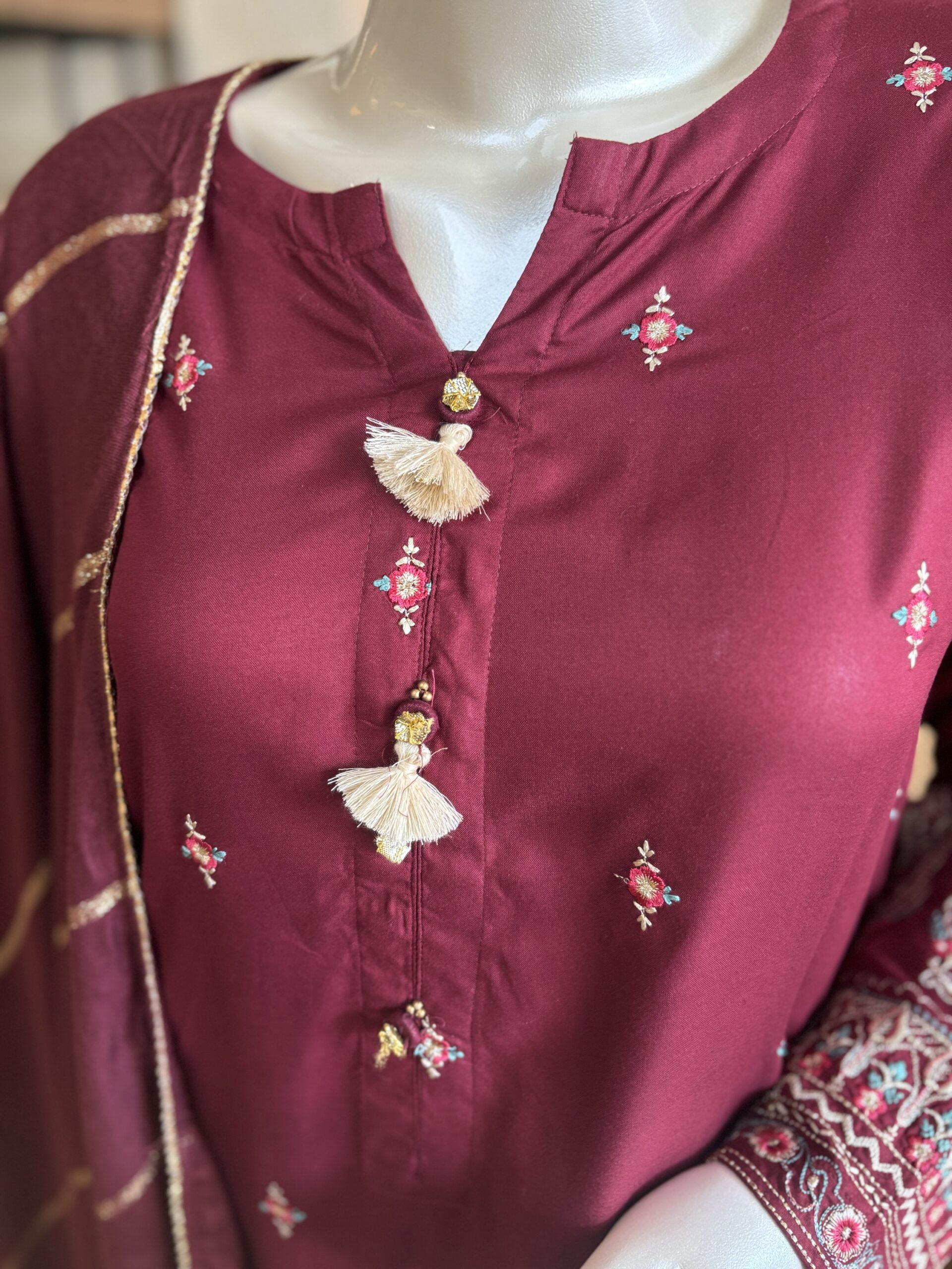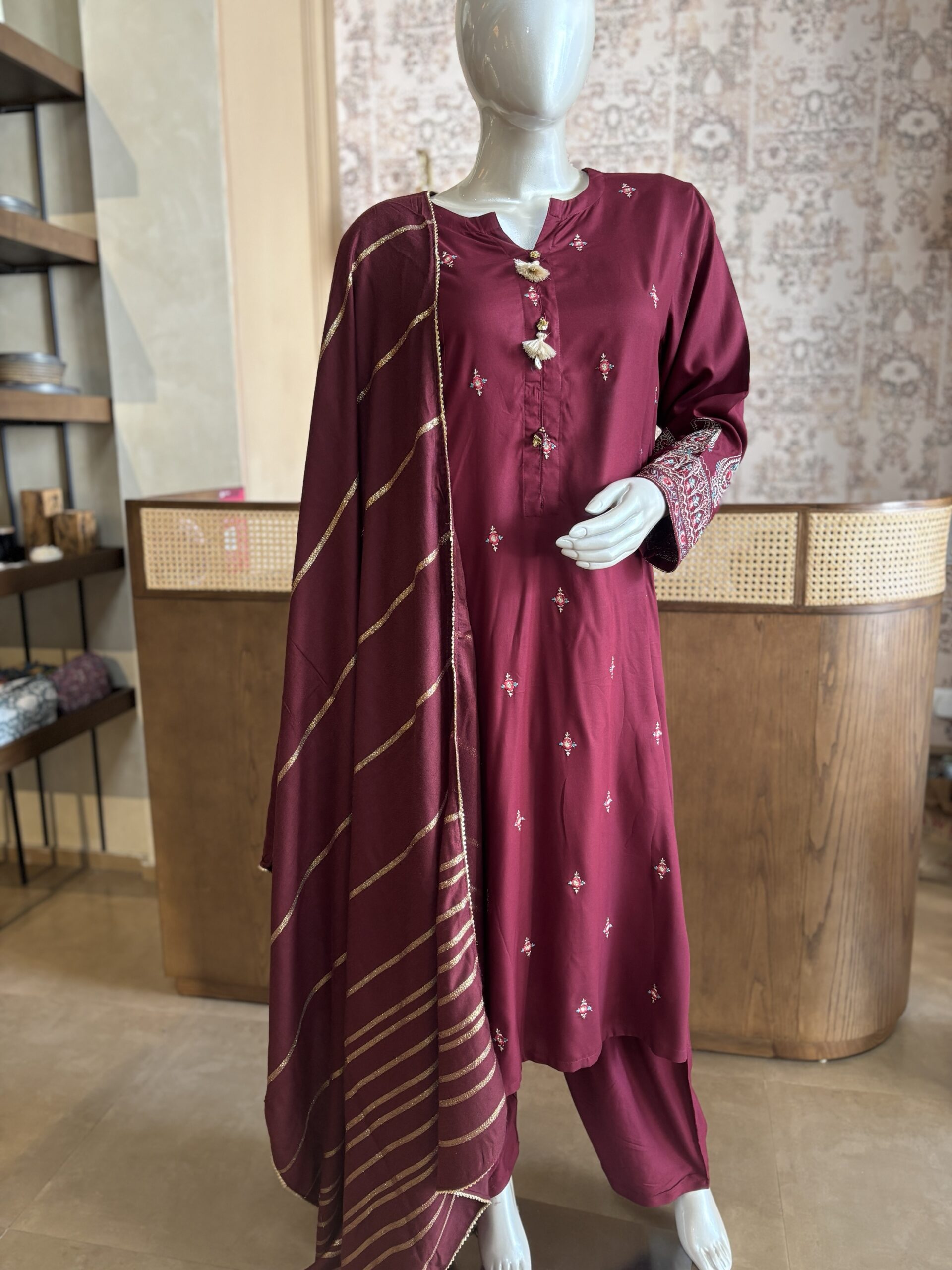 Collection: Embroidered Linen Shirt And Yarn Dyed Shawl With Linen Trouser