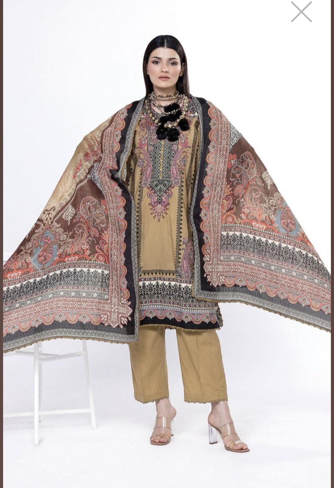 3Pc Unstitched Lawn Suit with Lawn Dupatta.