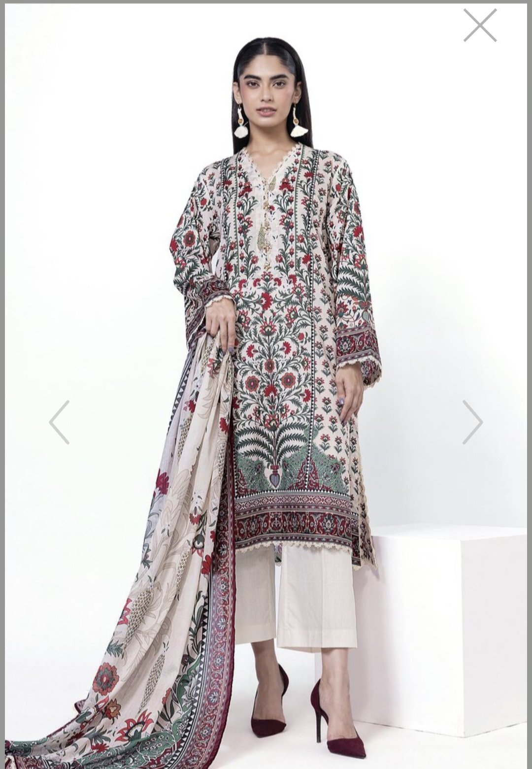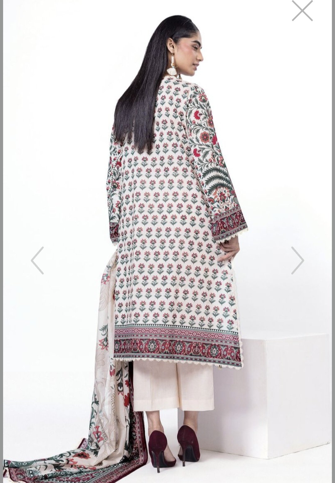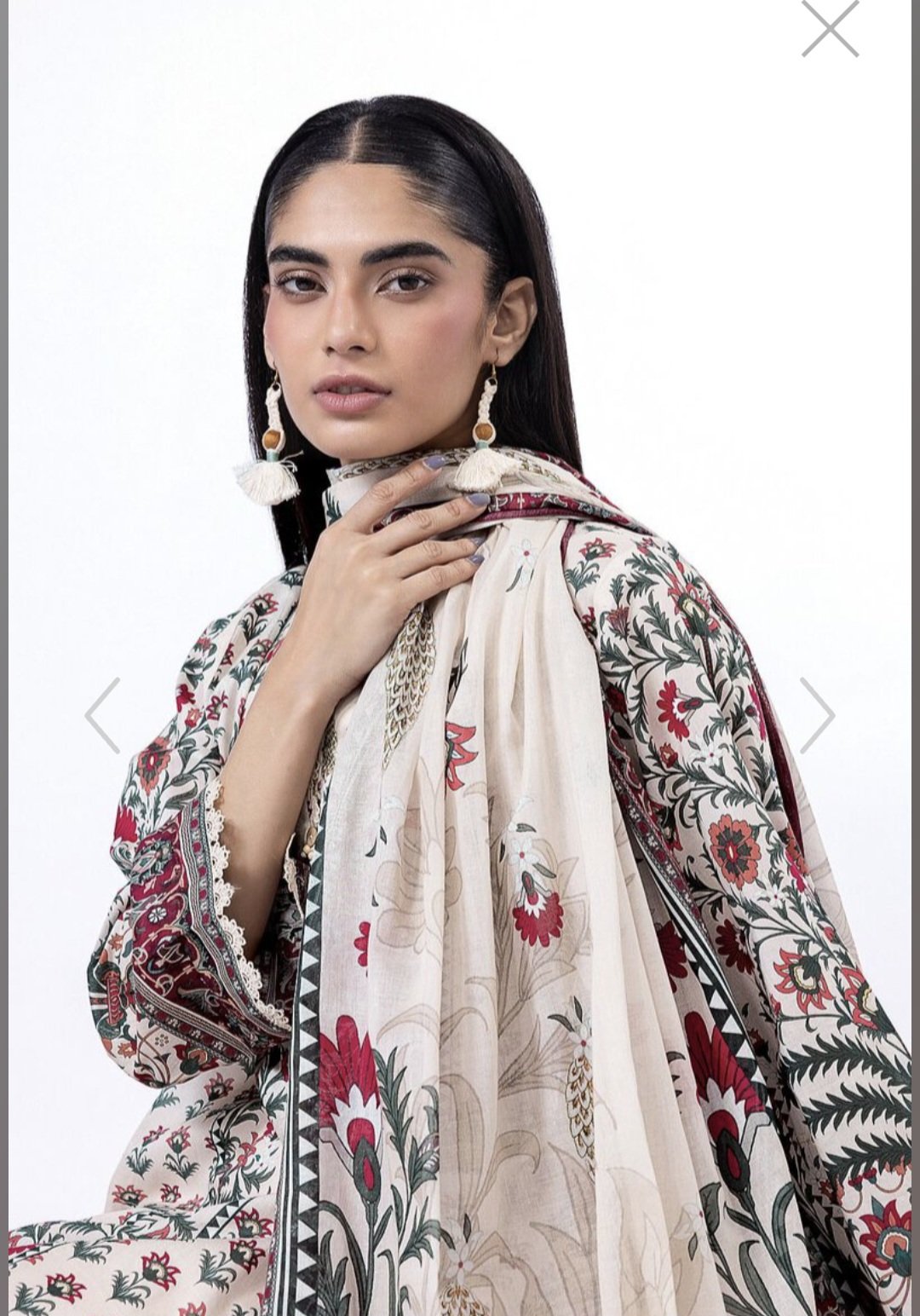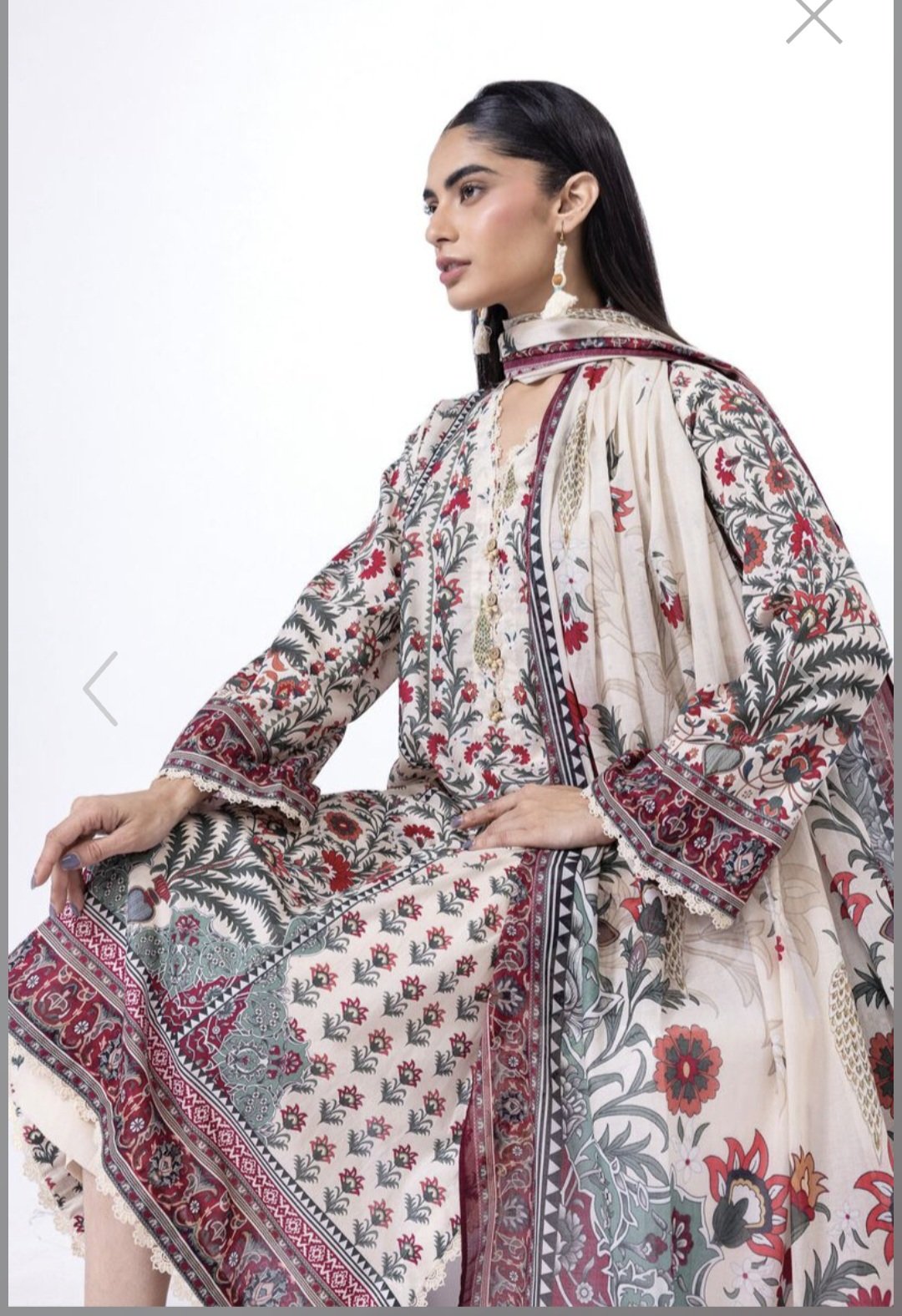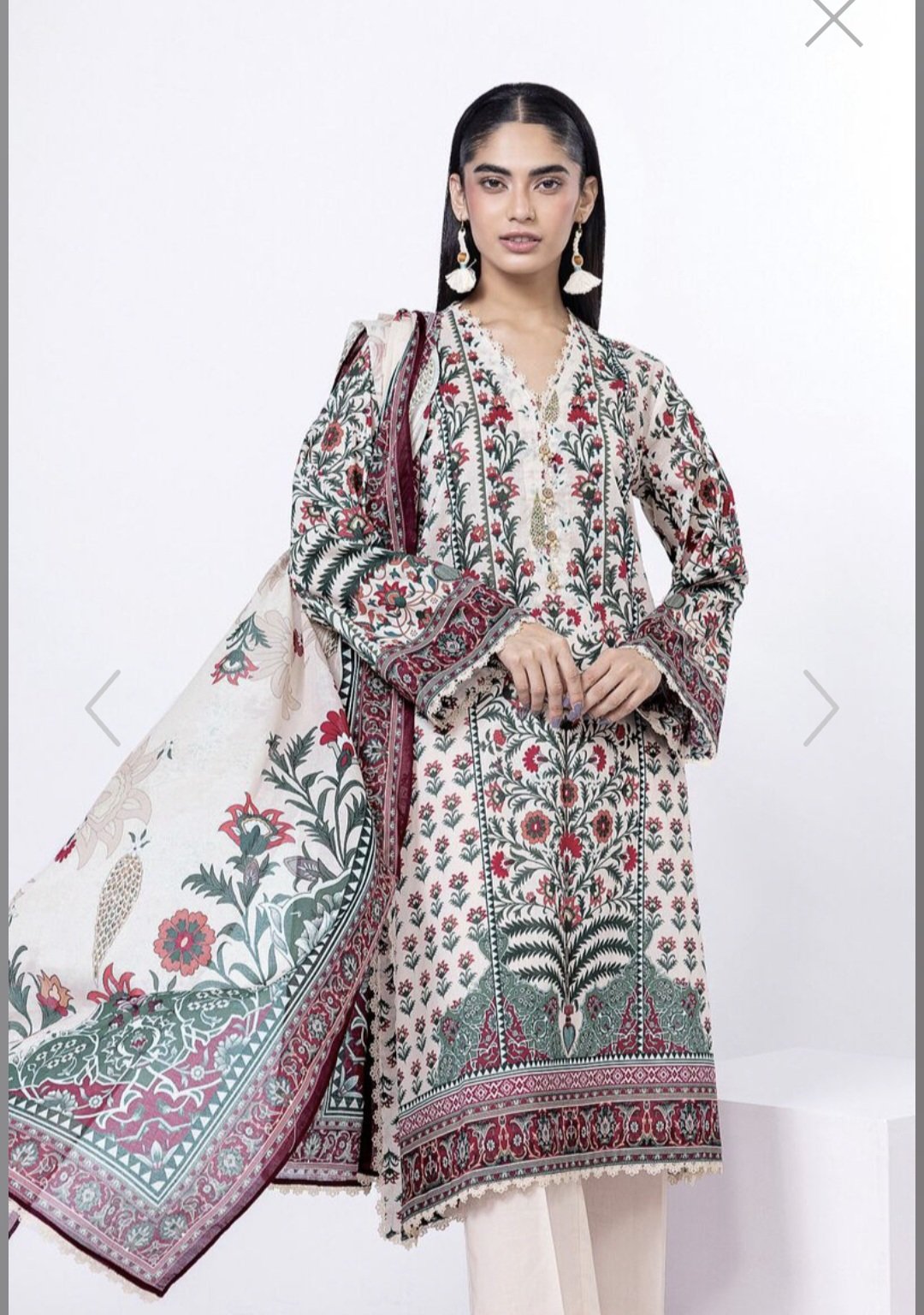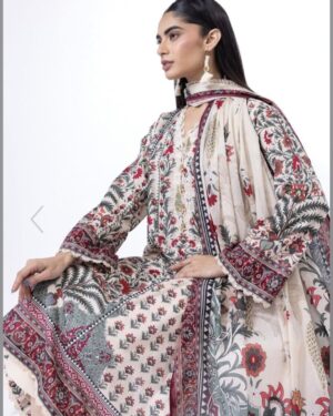 3Pc Unstitched Lawn Suit with Lawn Dupatta.
