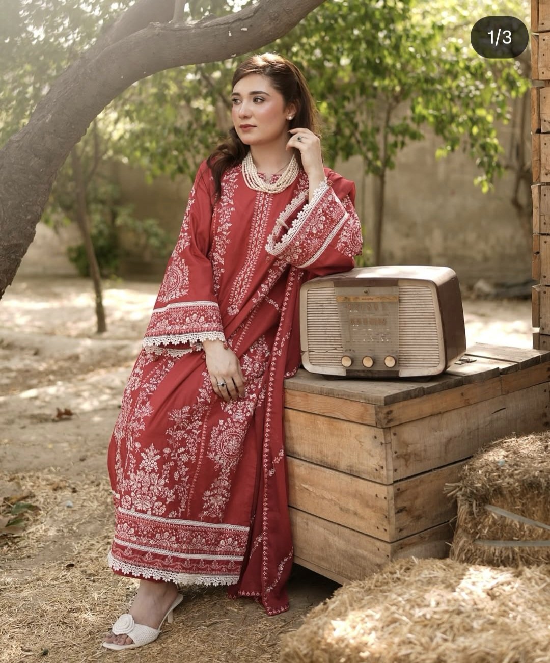 Lawn Embroidered Shirt Paired with chiffon embroidered dupatta and straight trouser.