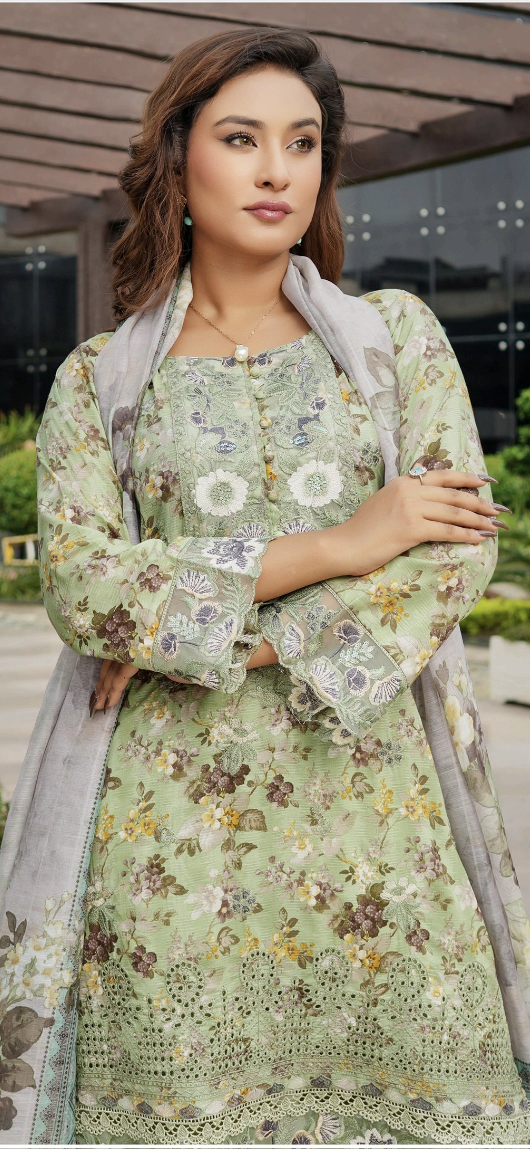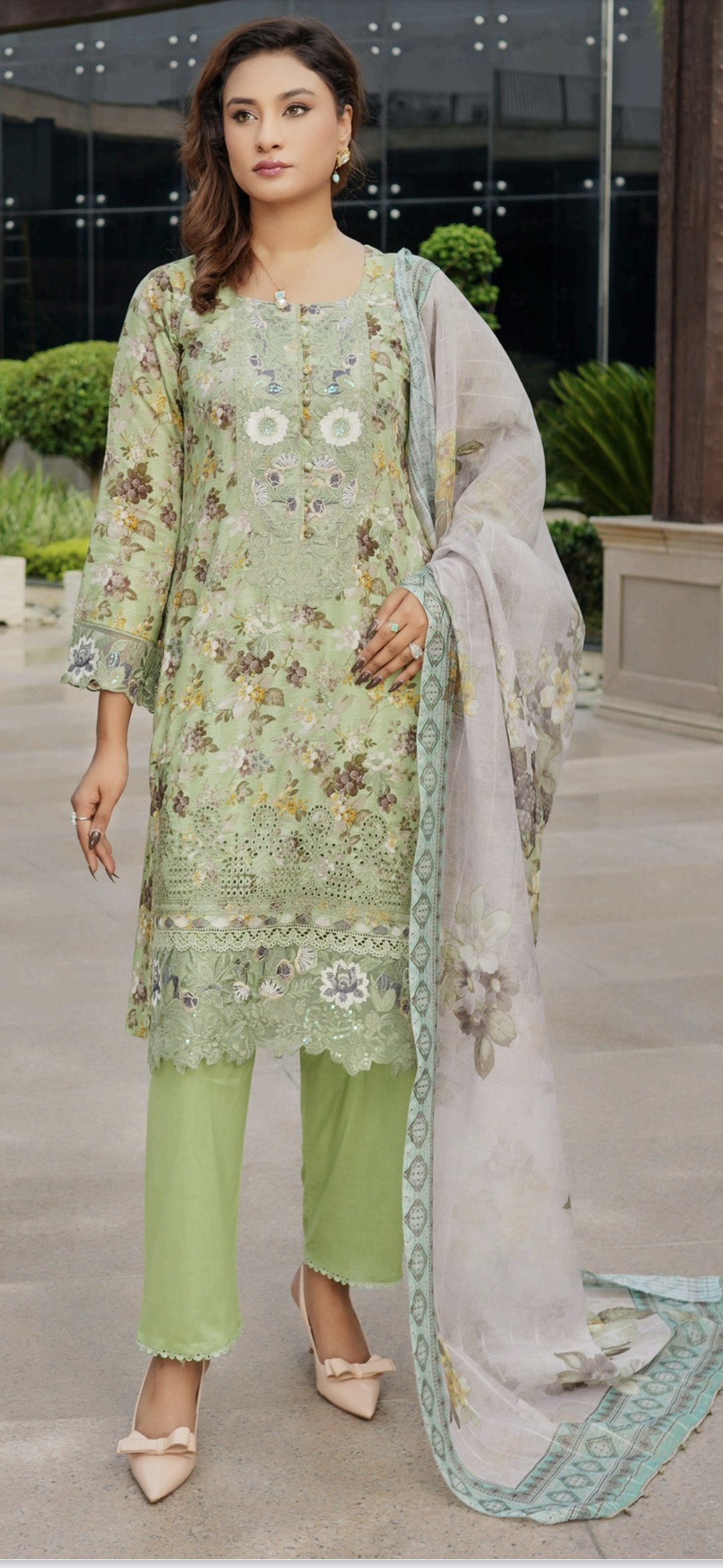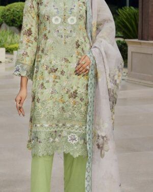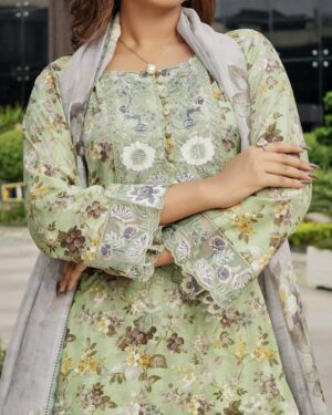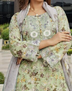 3Pc Embroidered Lawn Suit with fancy cotton Dupatta.