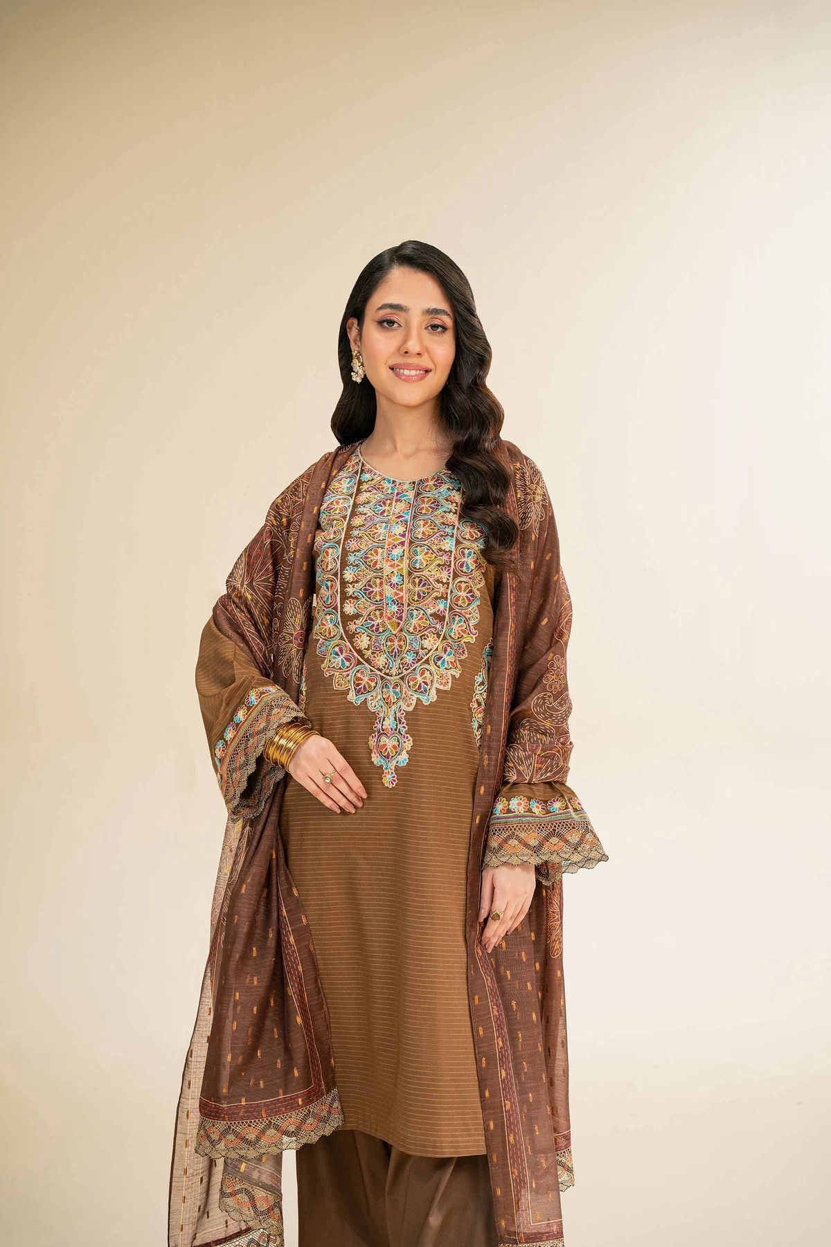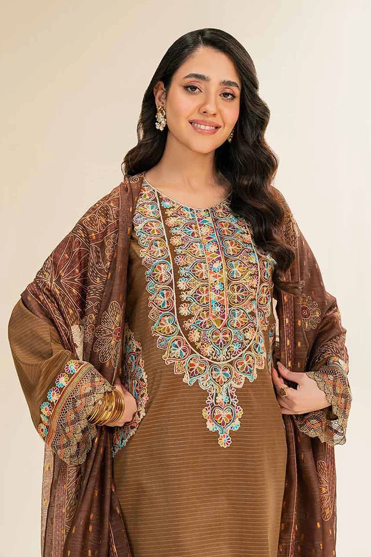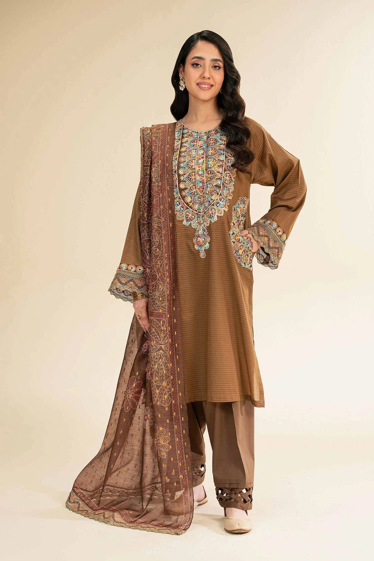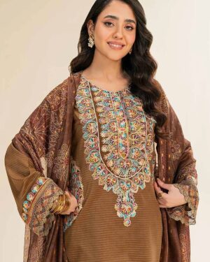 Feel the confidence of flawless style with this embroidered three-piece from the latest unstitched summer collection.