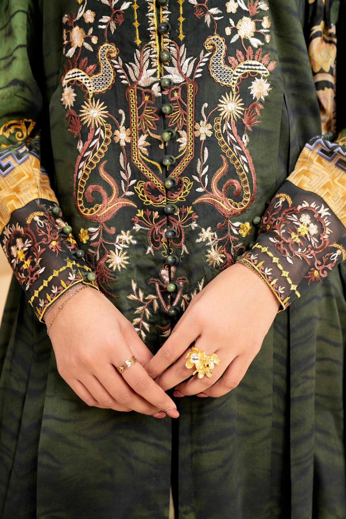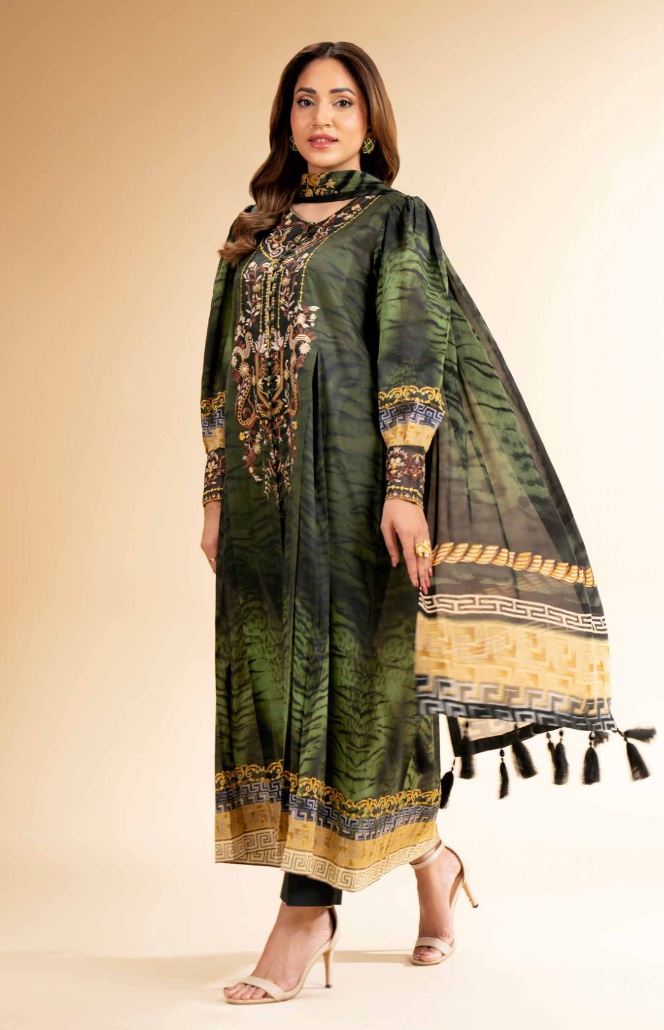 Feel the confidence of flawless style with this digital printed embroidered three-piece creation from the latest unstitched summer collection.