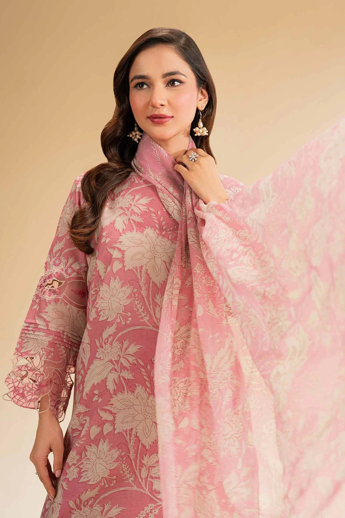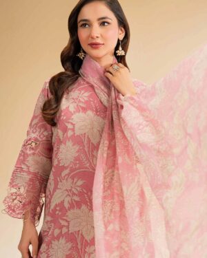 Get a stunning & fabulous blend of eye-catching looks by wearing this printed embroidered three-piece from the latest summer collection.