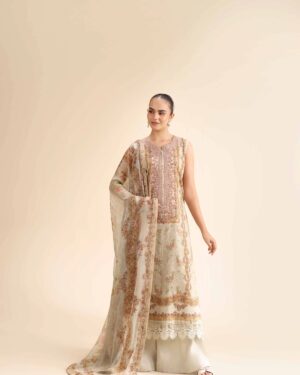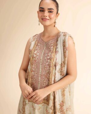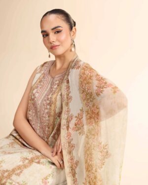 Exude grace with this digital printed embroidered three-piece from the latest unstitched summer collection.