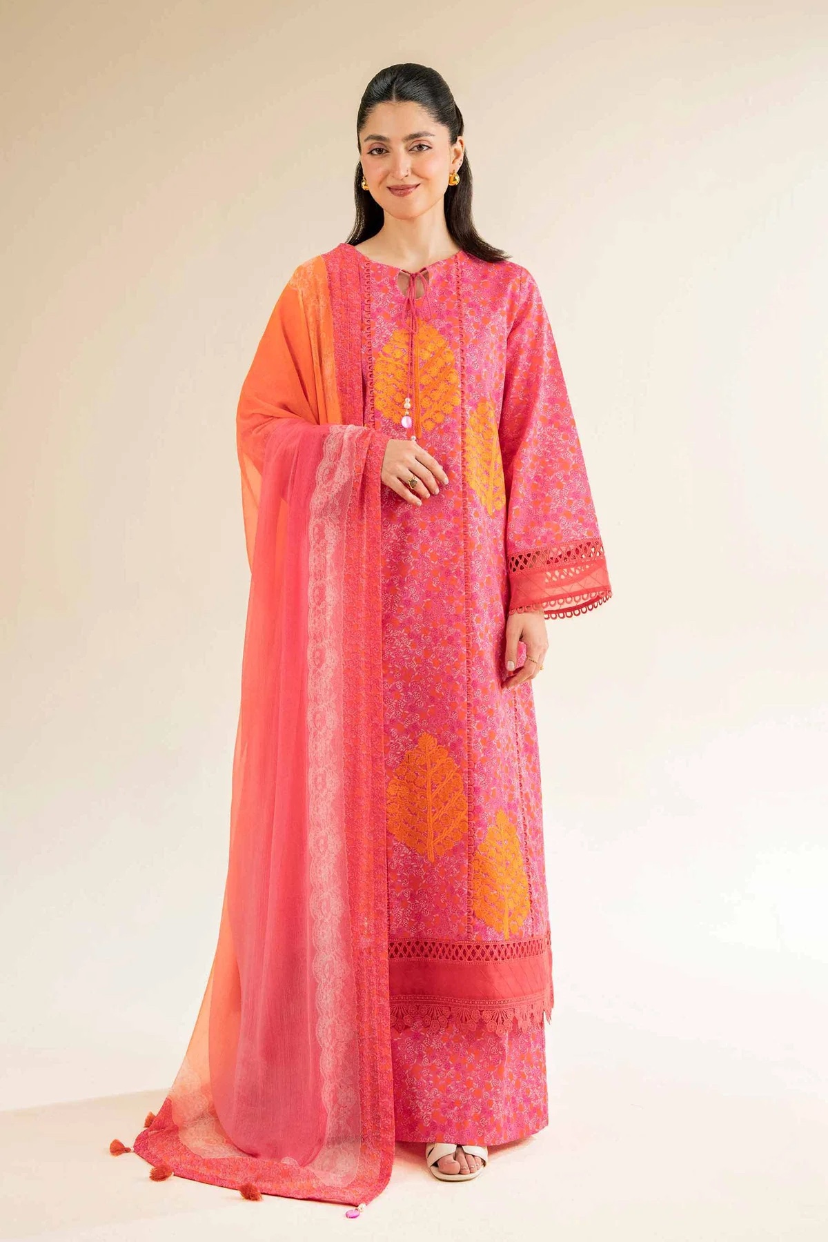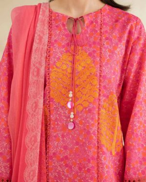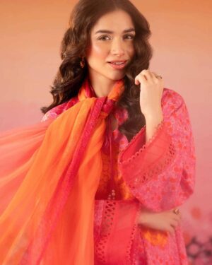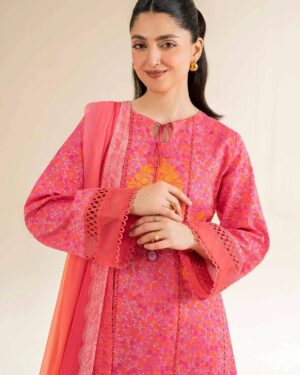 Exude grace in this printed embroidered three-piece from the latest unstitched summer collection.