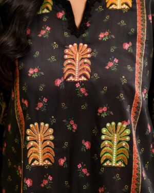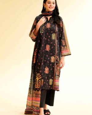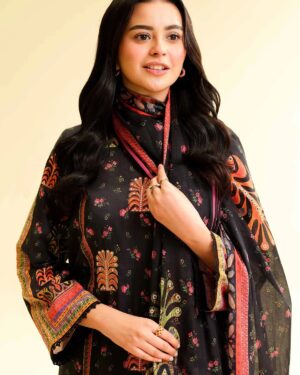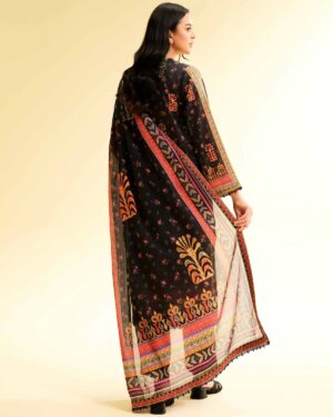 Feel the confidence of flawless style with this digital printed embroidered three-piece from the latest unstitched summer collection.