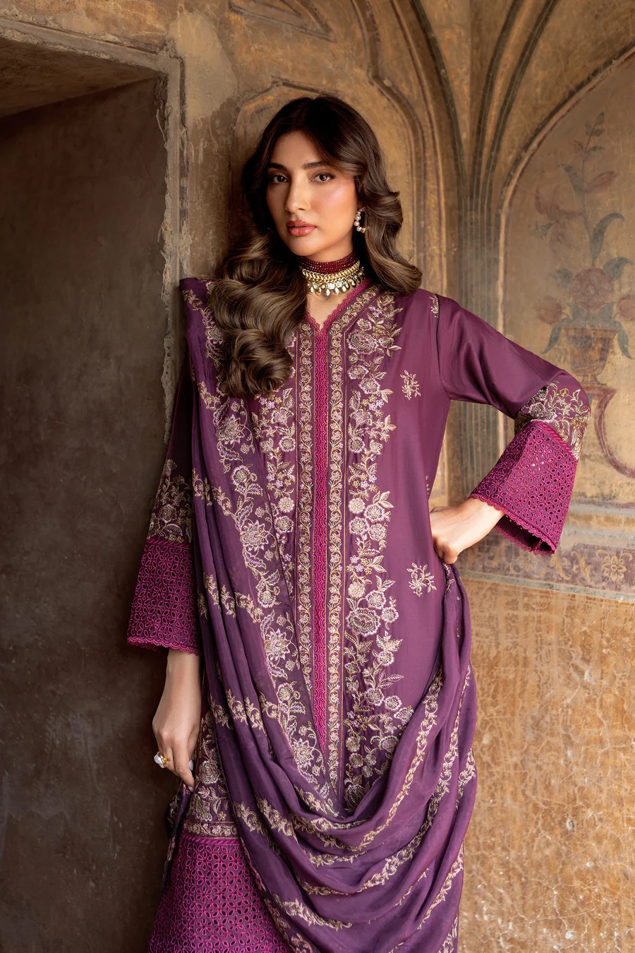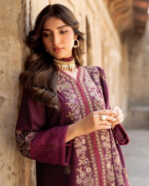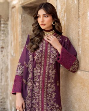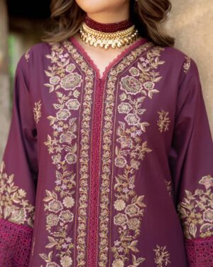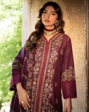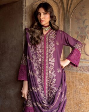 3Pc Embroidered Lawn suit with embroidered silk dupatta