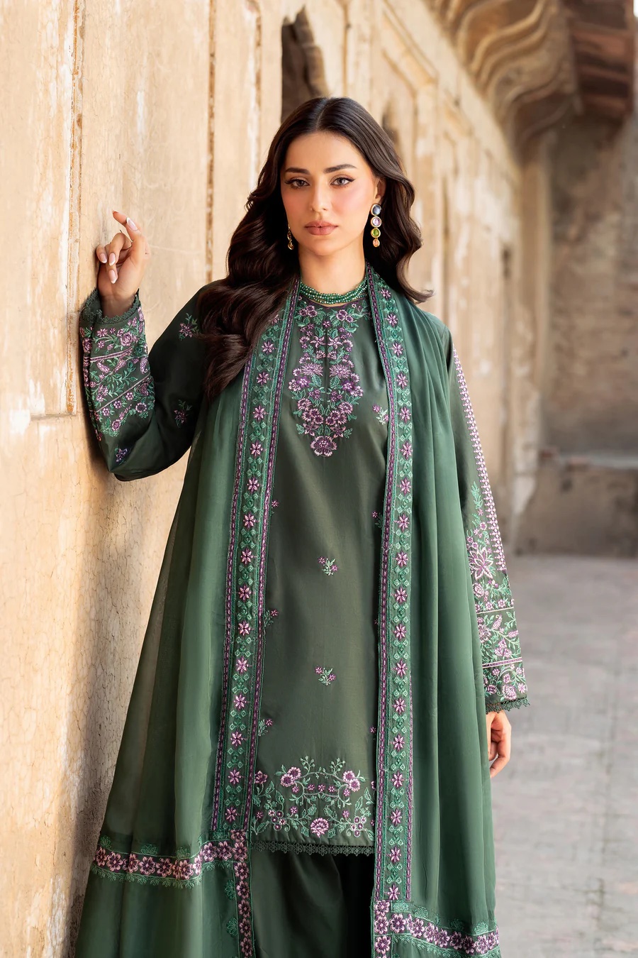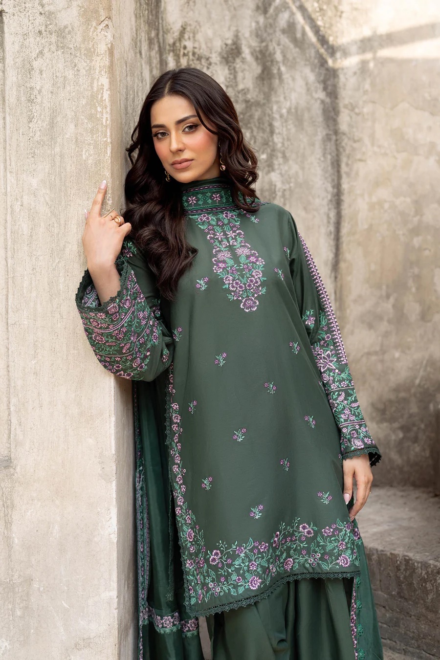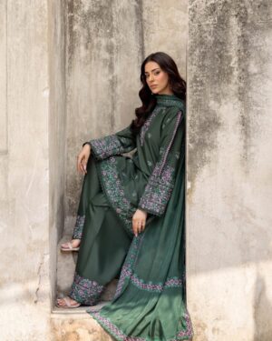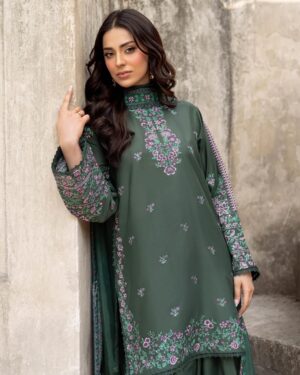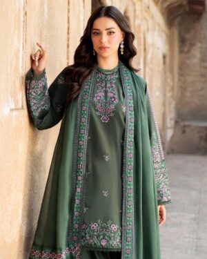 3Pc Embroidered Lawn Suit with Embroidered silk Dupatta.