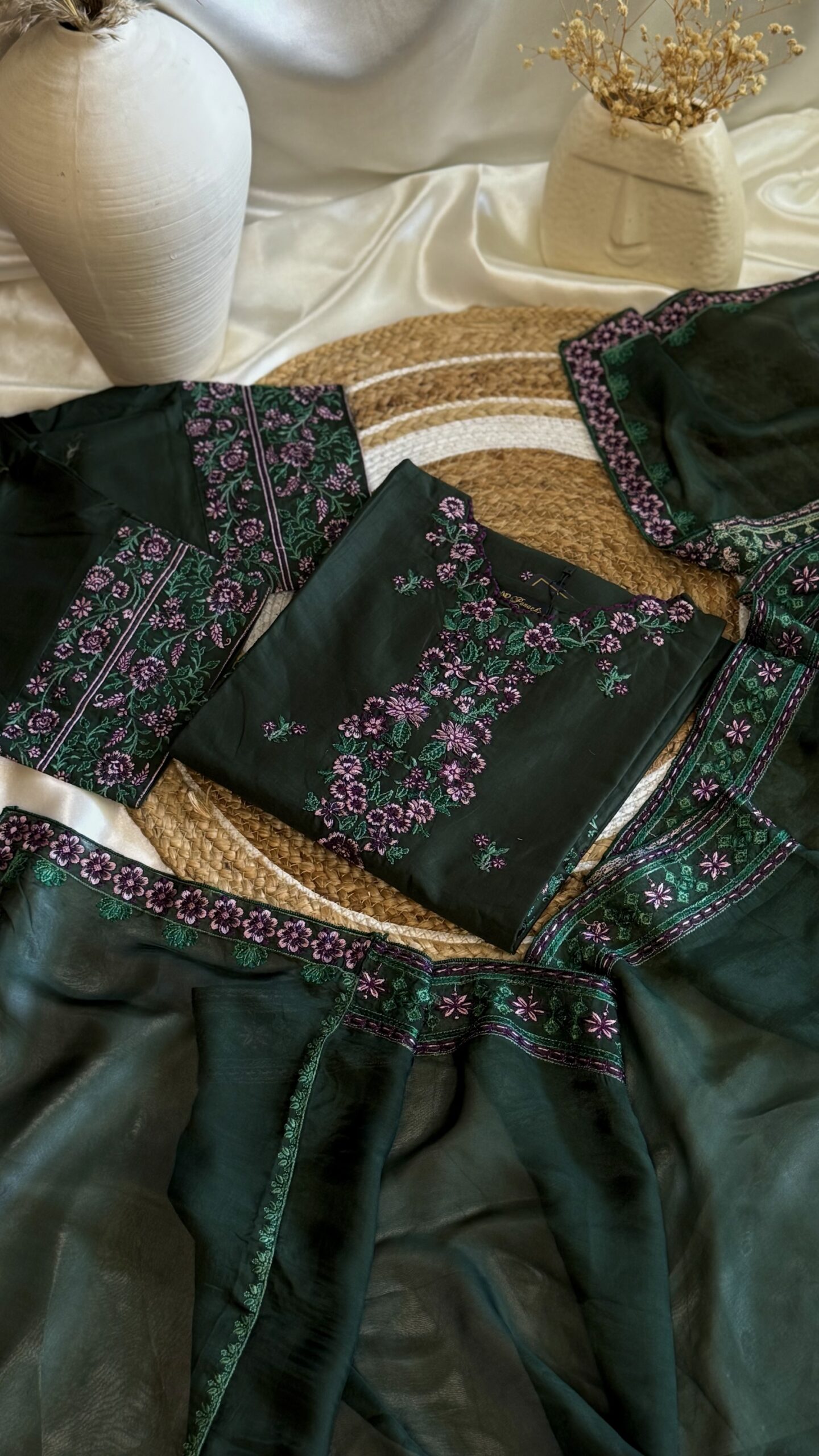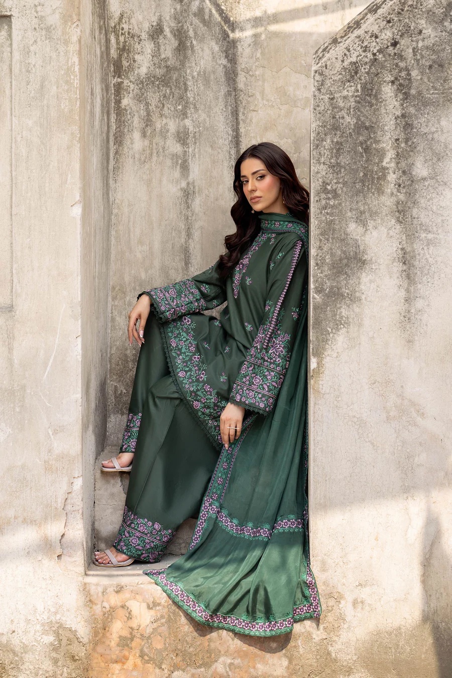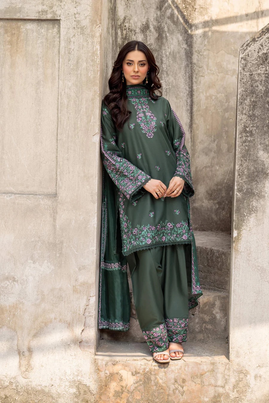 3Pc Embroidered Lawn Suit with Embroidered silk Dupatta.