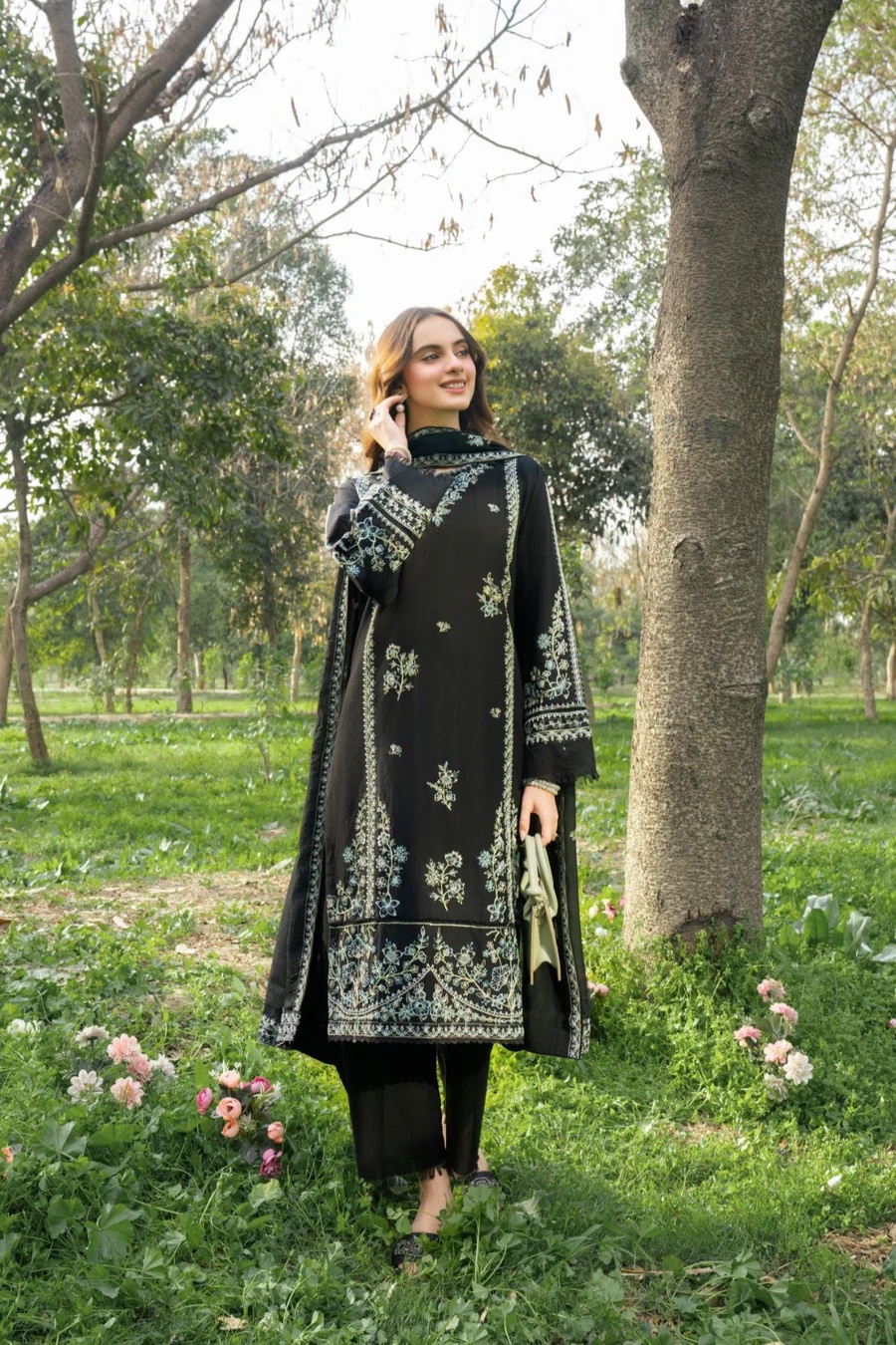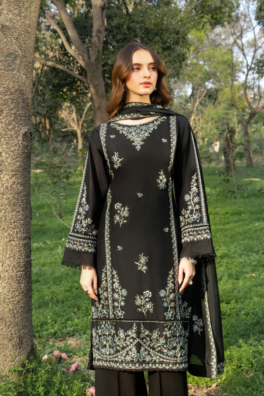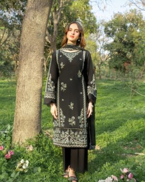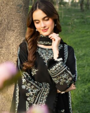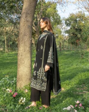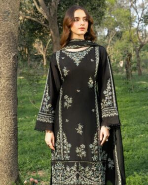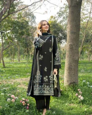 3Pc Embroidered Lawn suit with Embroidered silk Dupatta.