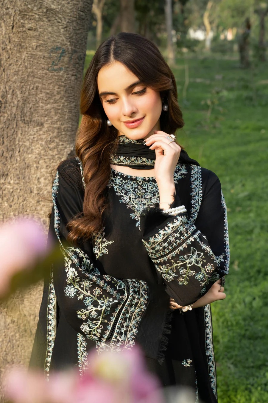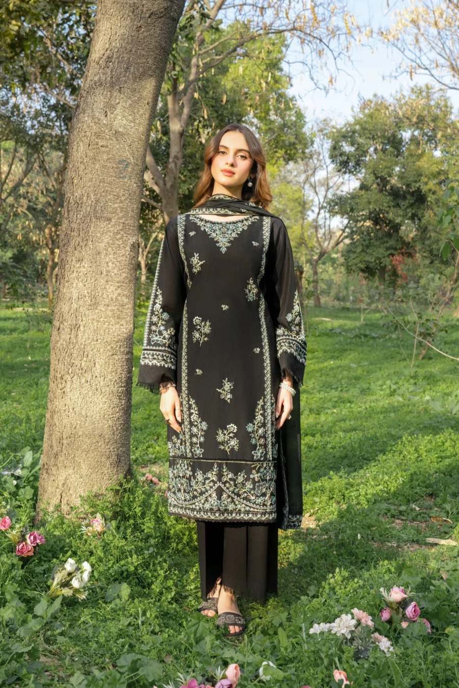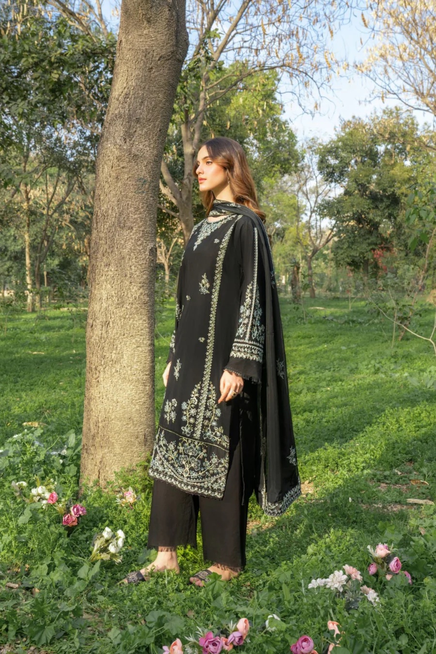 3Pc Embroidered Lawn suit with Embroidered silk Dupatta.