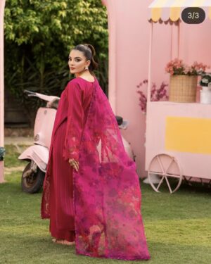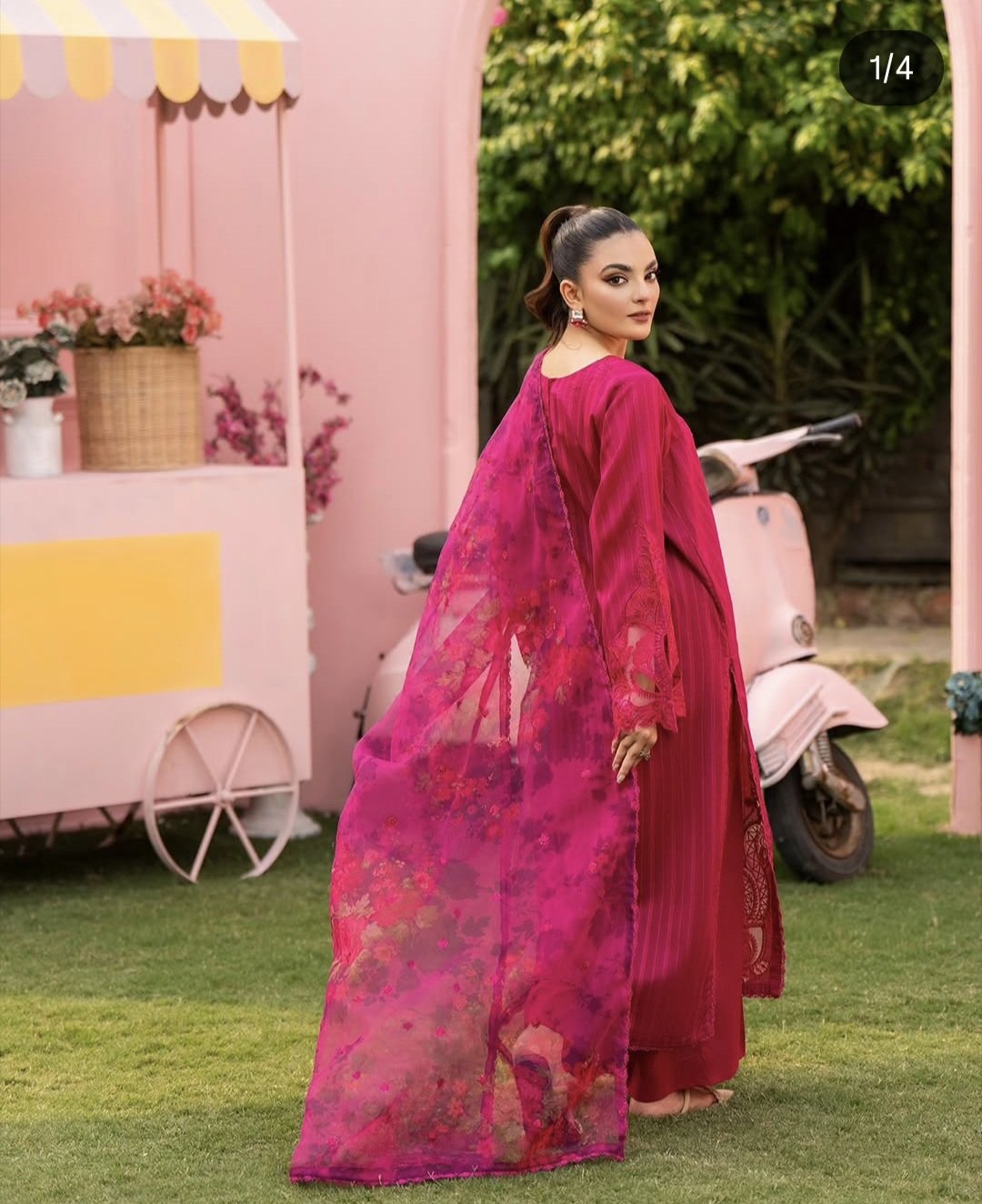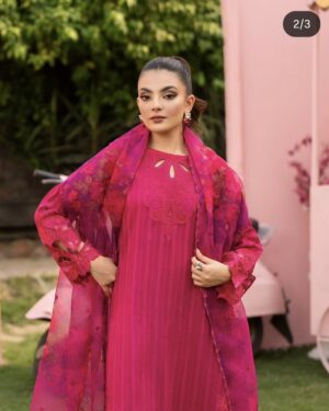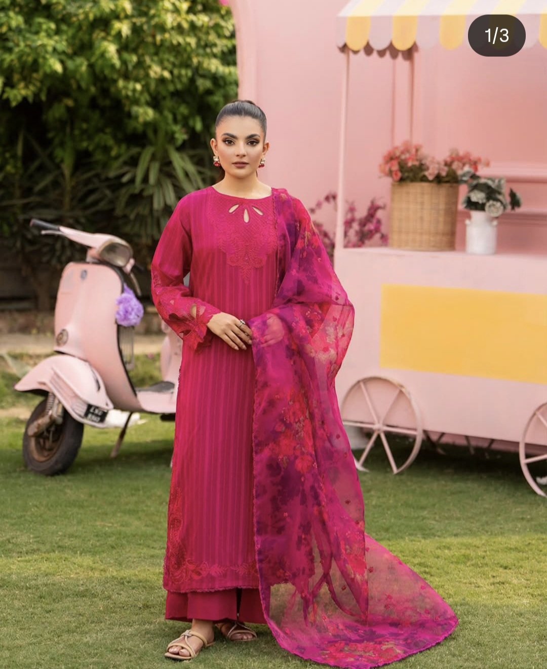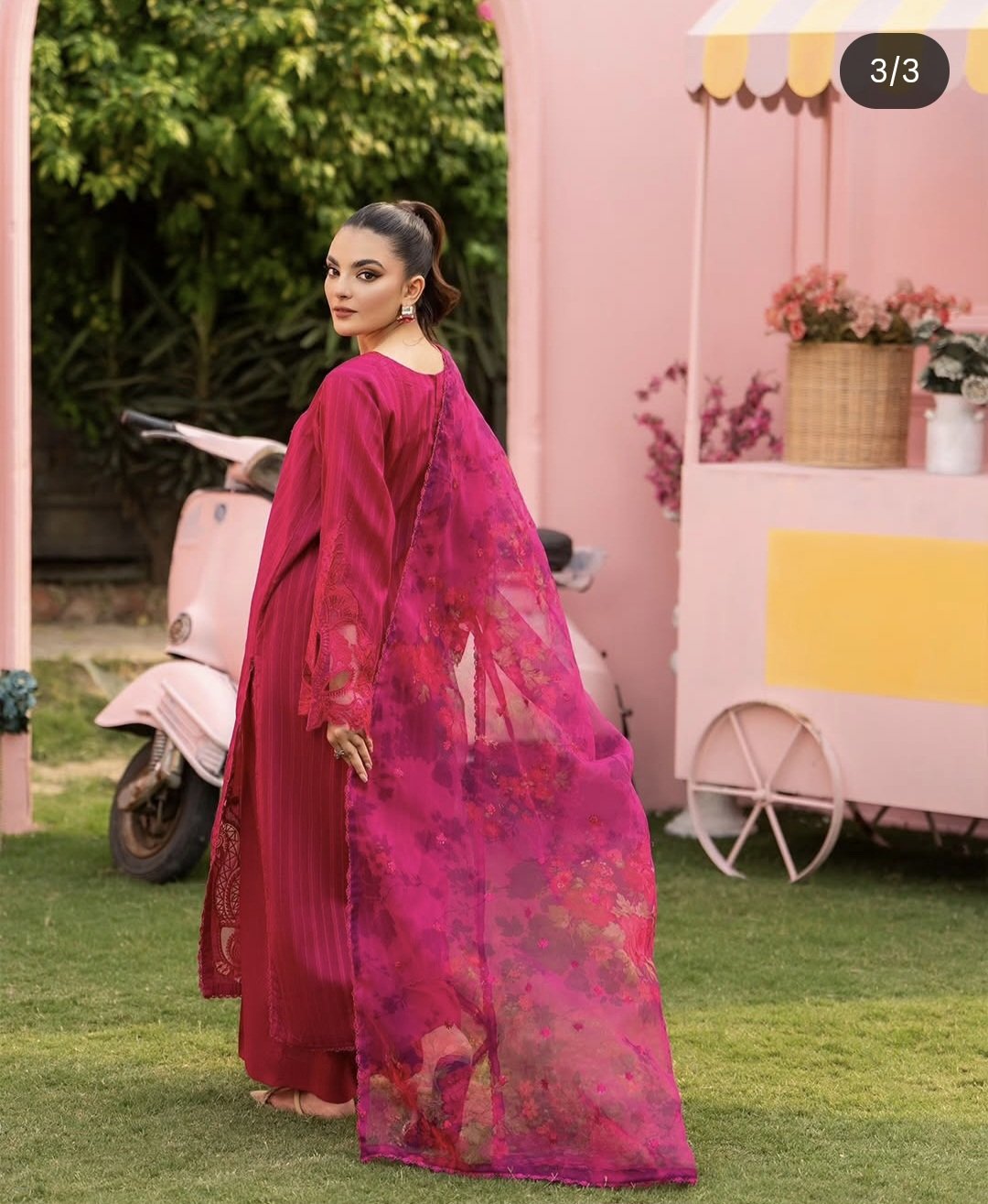 3Pc Embroidered Lawn Suit with Organza Dupatta.