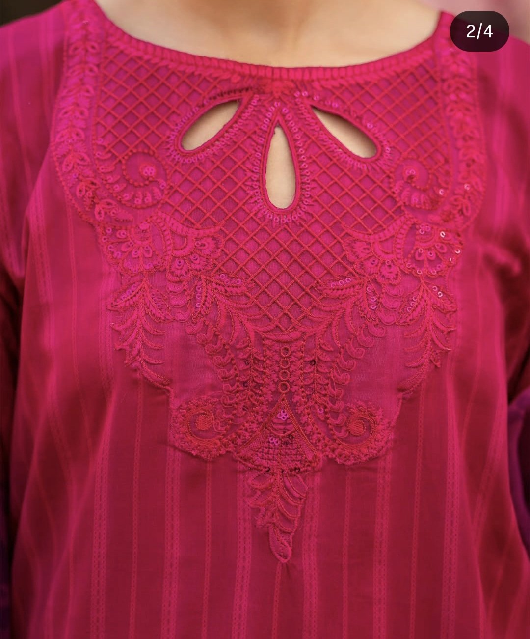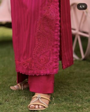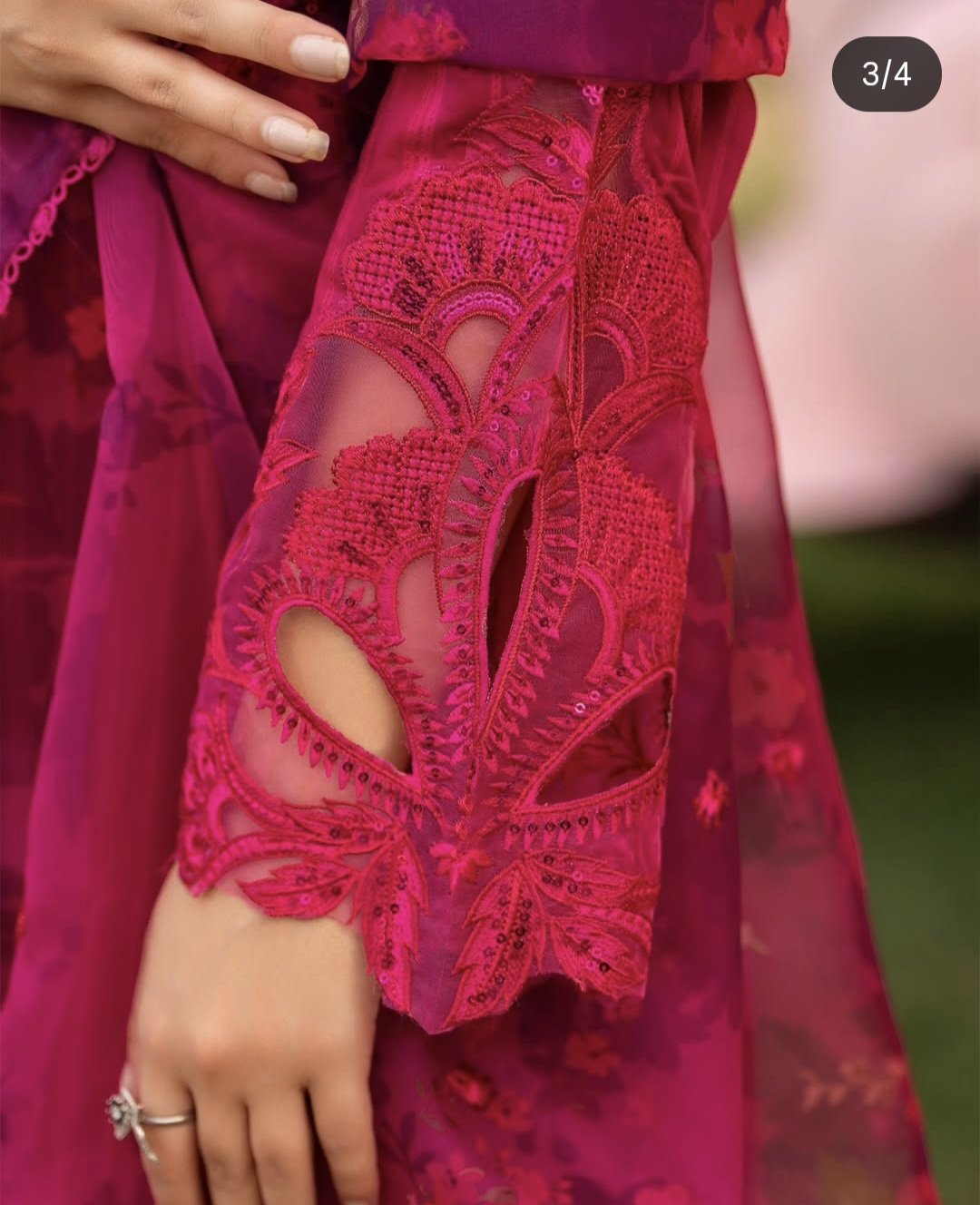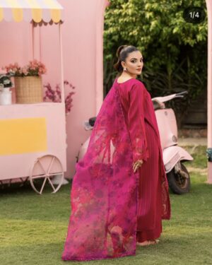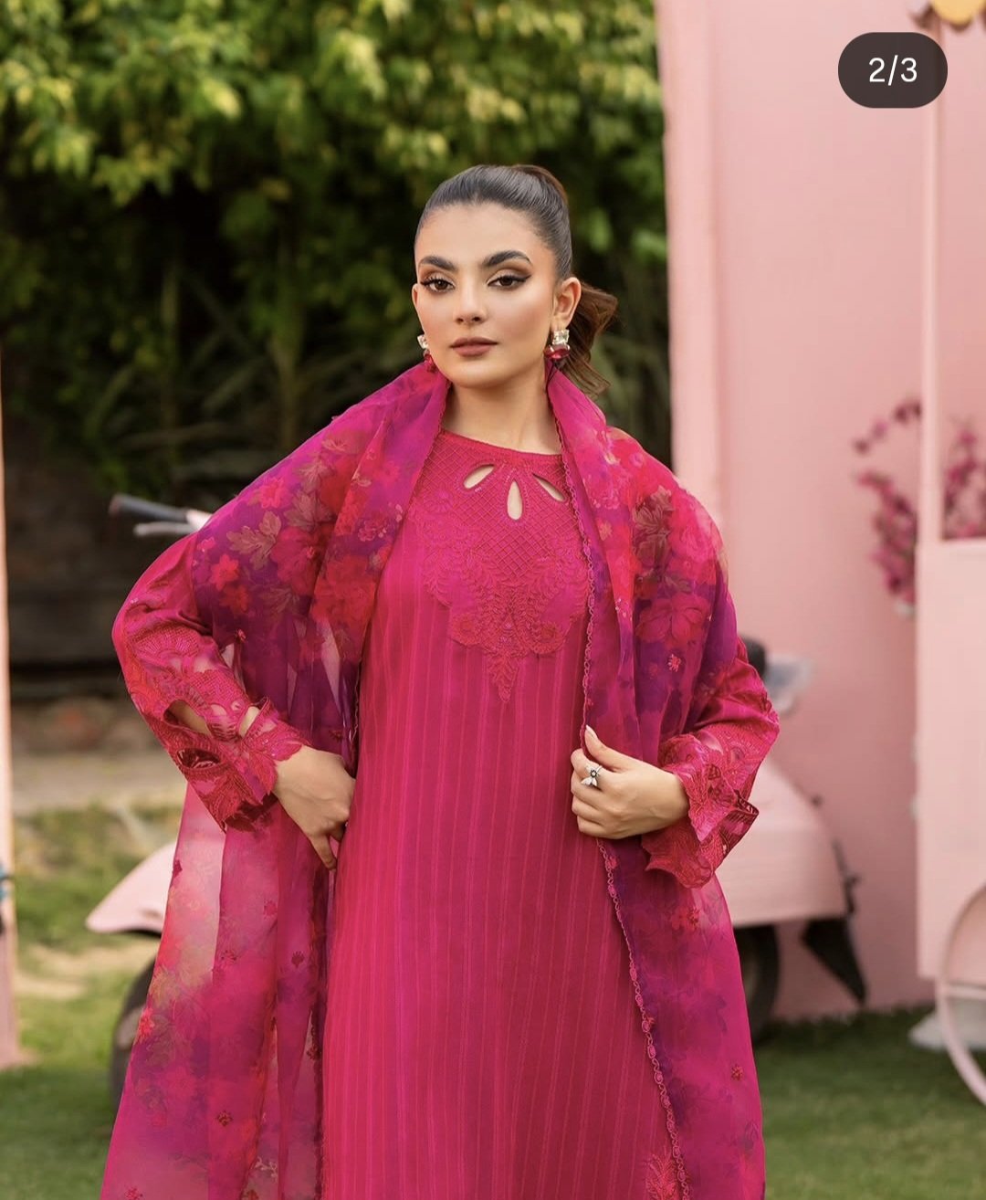3Pc Embroidered Lawn Suit with Organza Dupatta.