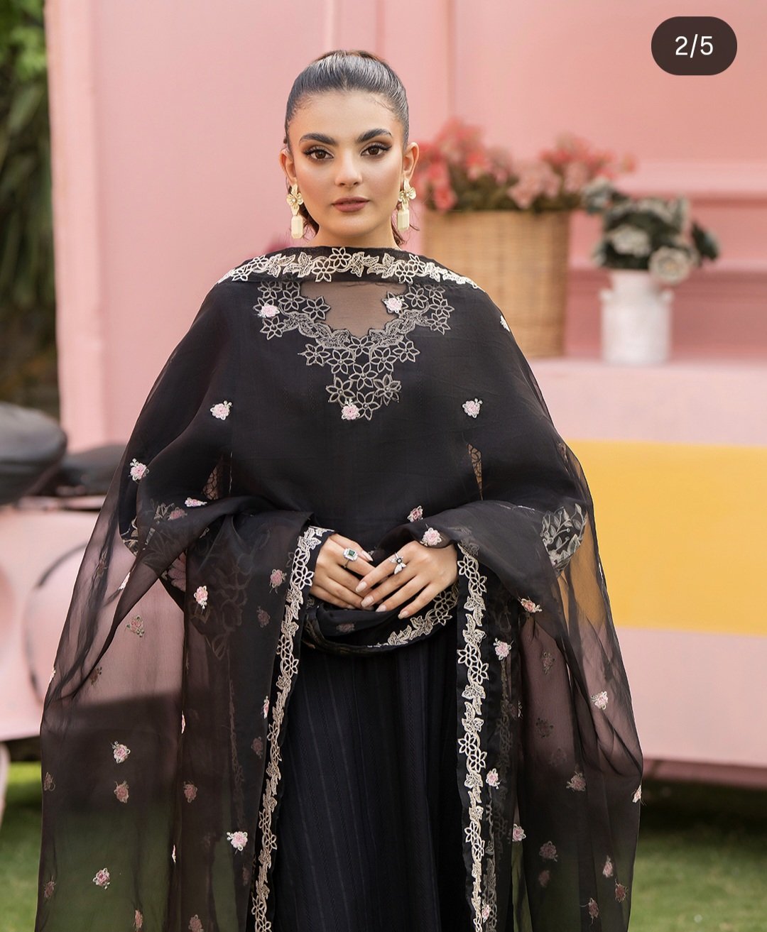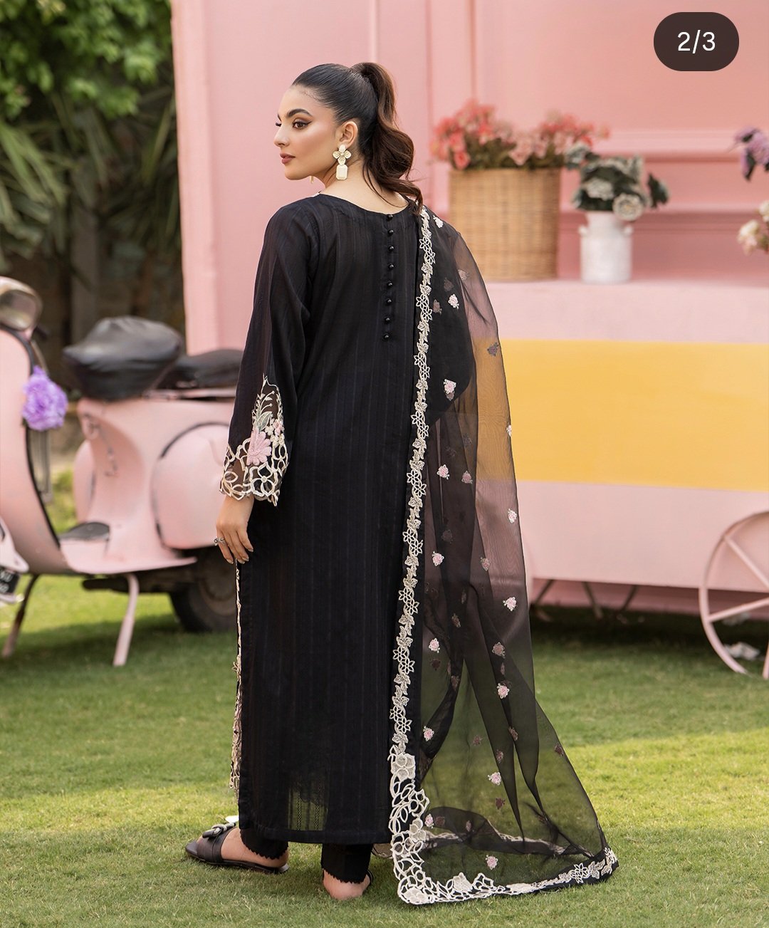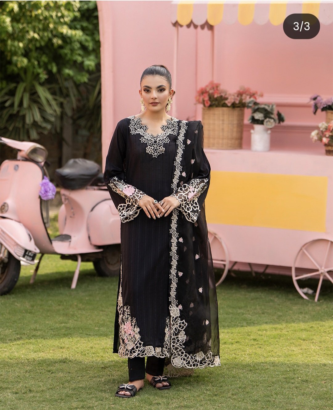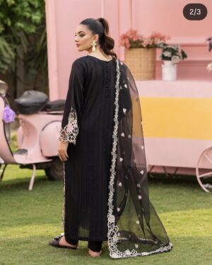 3Pc Embroidered Lawn Suit with Embroidered Organza Dupatta
