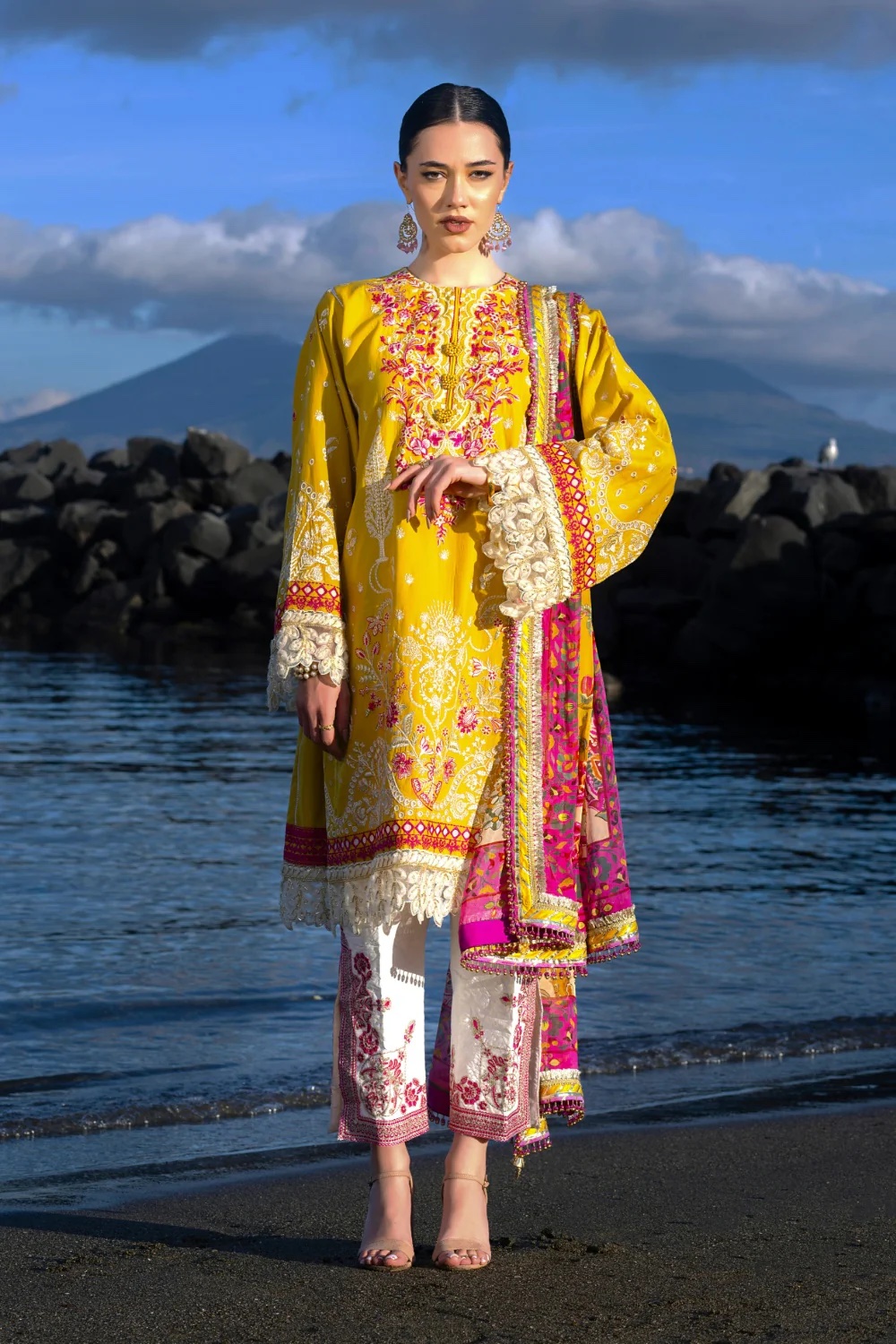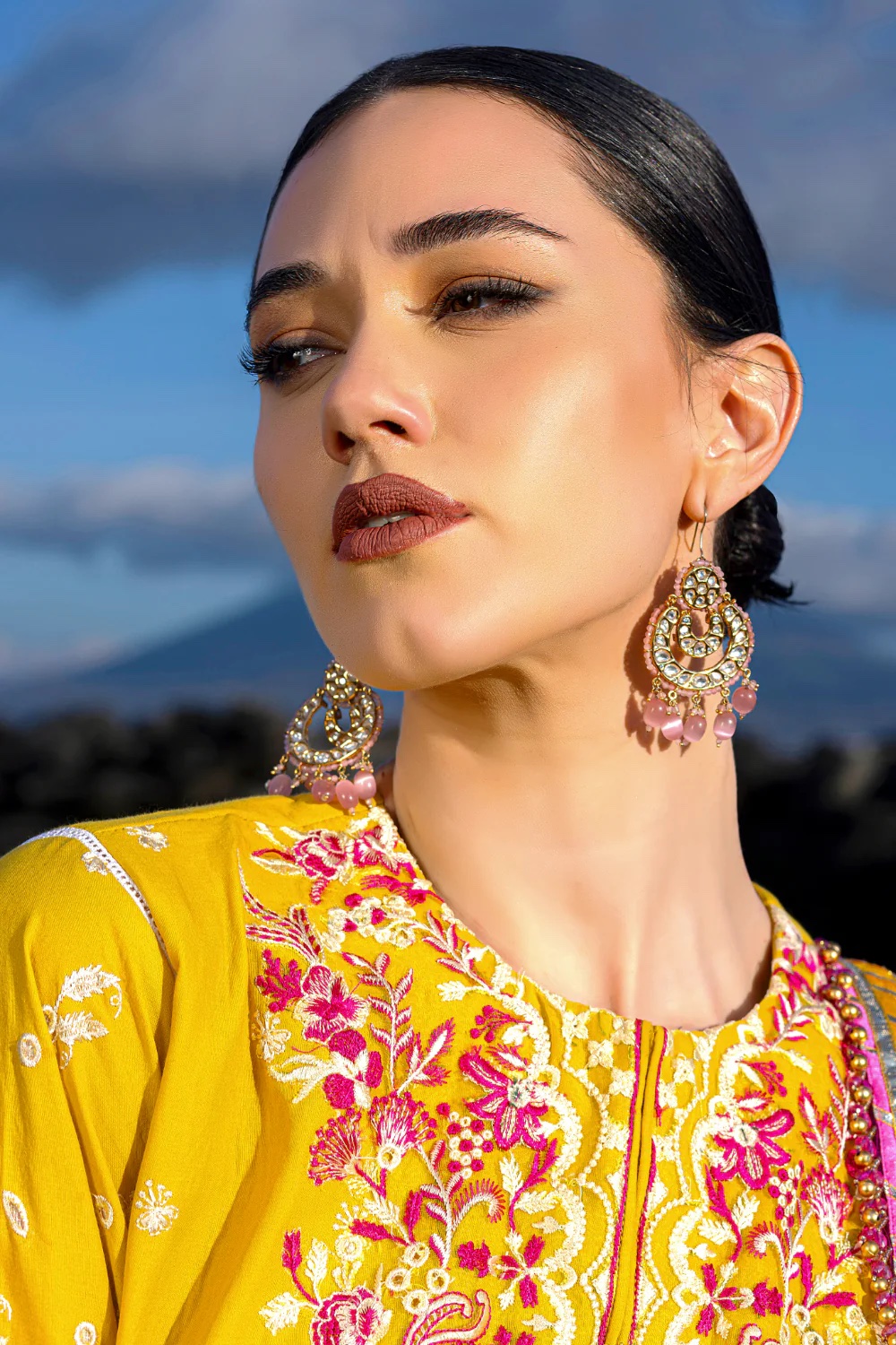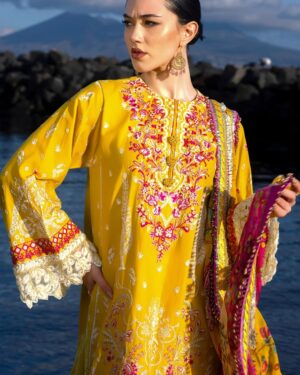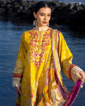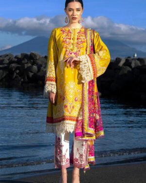 RY1 3Pc Embroidered Lawn Suit with Printed Chiffon Dupatta