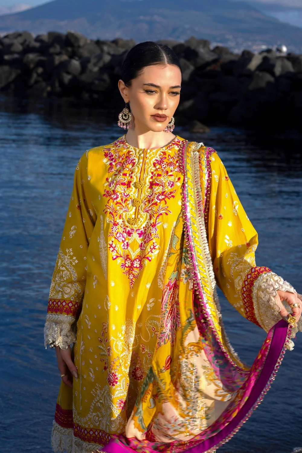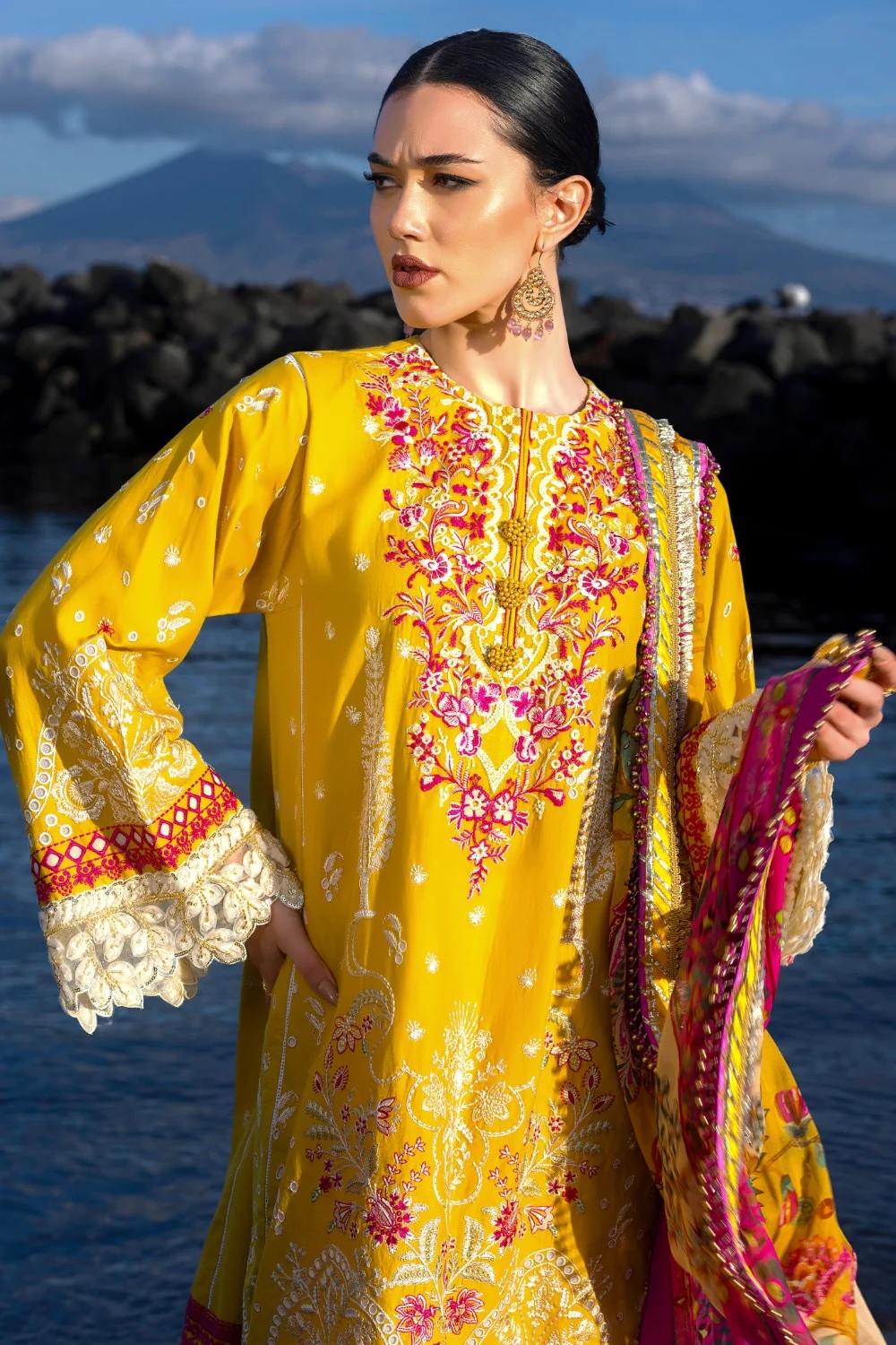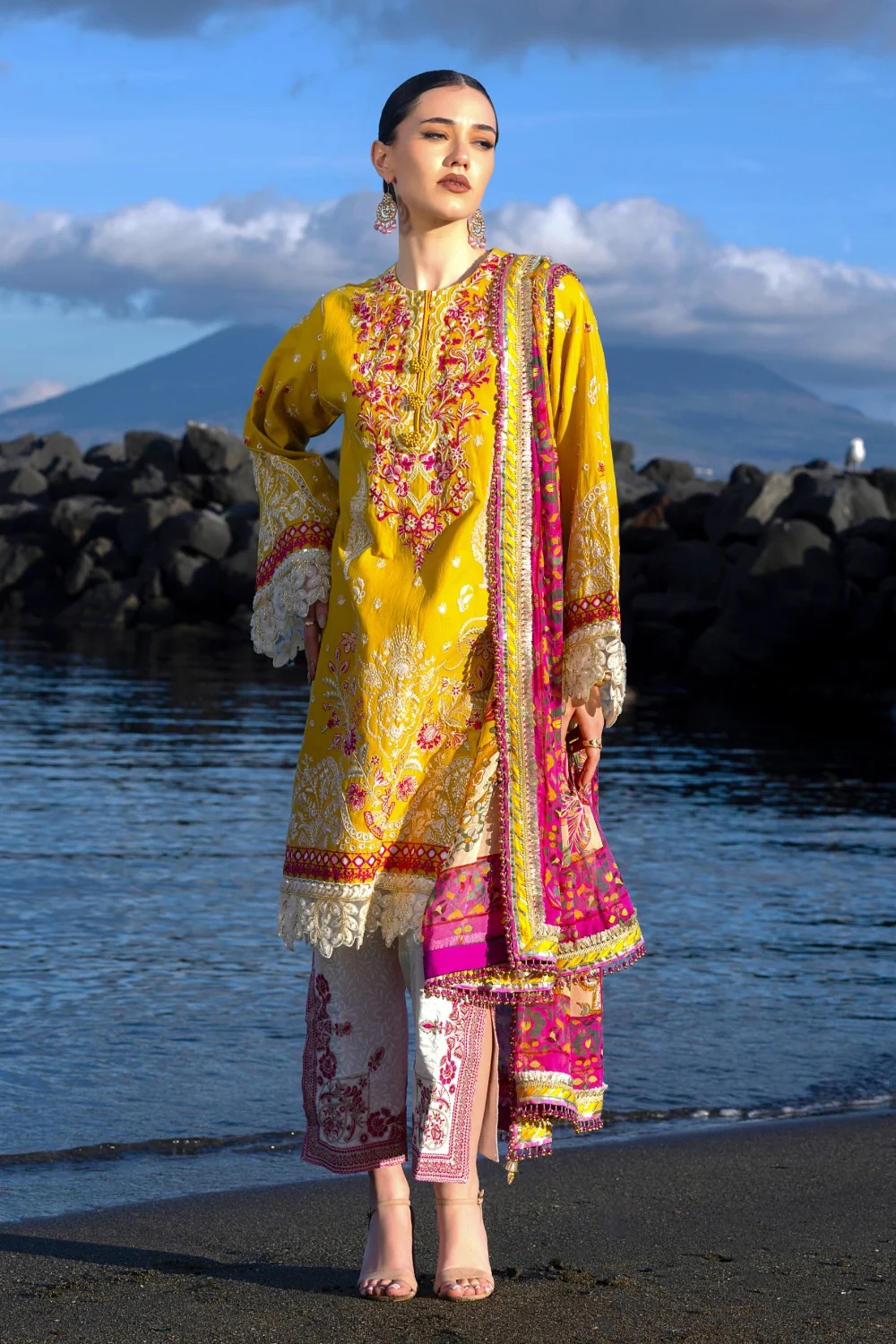 RY1 3Pc Embroidered Lawn Suit with Printed Chiffon Dupatta