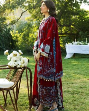 Additional Description: Embroidered lawn Centre Panel – 1 piece Embroidered lawn Front right side panel – 1 piece Embroidered lawn Front left side panel – 1 piece Embroidered lawn Back – 1 yard Embroidered lawn Sleeves – 0.72 yard Embroidered organza sleeve patches – 8 pcs Embroidered organza shirt border – 1.4 yard Embroidered organza shirt back border – 1 yard Embroidered organza trouser border – 48″” Embroidered Swiss voile dupatta – 2.9 yard Embroidered Swiss voile dupatta pallu – 2 piece Embroidered organza palu corner patch – 4 piece Embroidered organza dupatta patti – 8.7 yard Dyed woven Cambric Trouser – 2.12 yard”