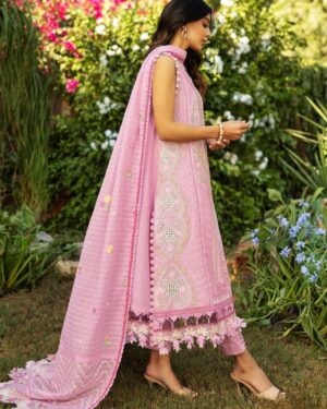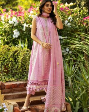 Embroidered lawn Centre Panel – 1 piece Embroidered lawn Side Panels (Right) – 1 piece Embroidered lawn Side Panels (Left) – 1 piece Embroidered lawn Back – 1 yard Embroidered lawn Sleeves – 0.72 yard Embroidered organza shirt border – 2 yard Embroidered organza sleeve border – 45″” Embroidered organza neckline patti – 30″” Embroidered dupatta centre – 1.8 yard Embroidered dupatta palu extension 1 – 0.72 yard Embroidered dupatta palu extension 2 – 0.72 yard Dyed Cambric Trouser – 2.12 yard”