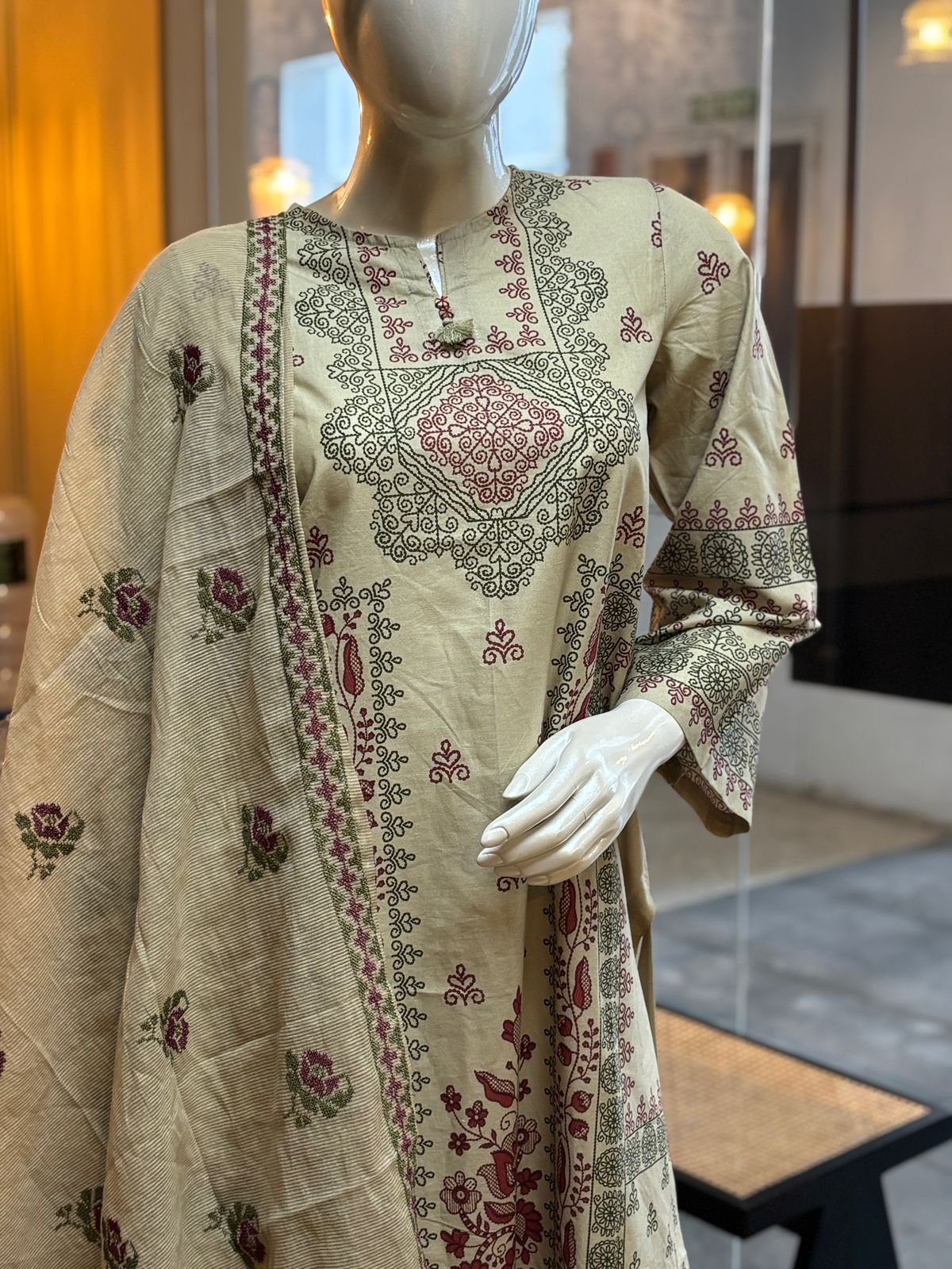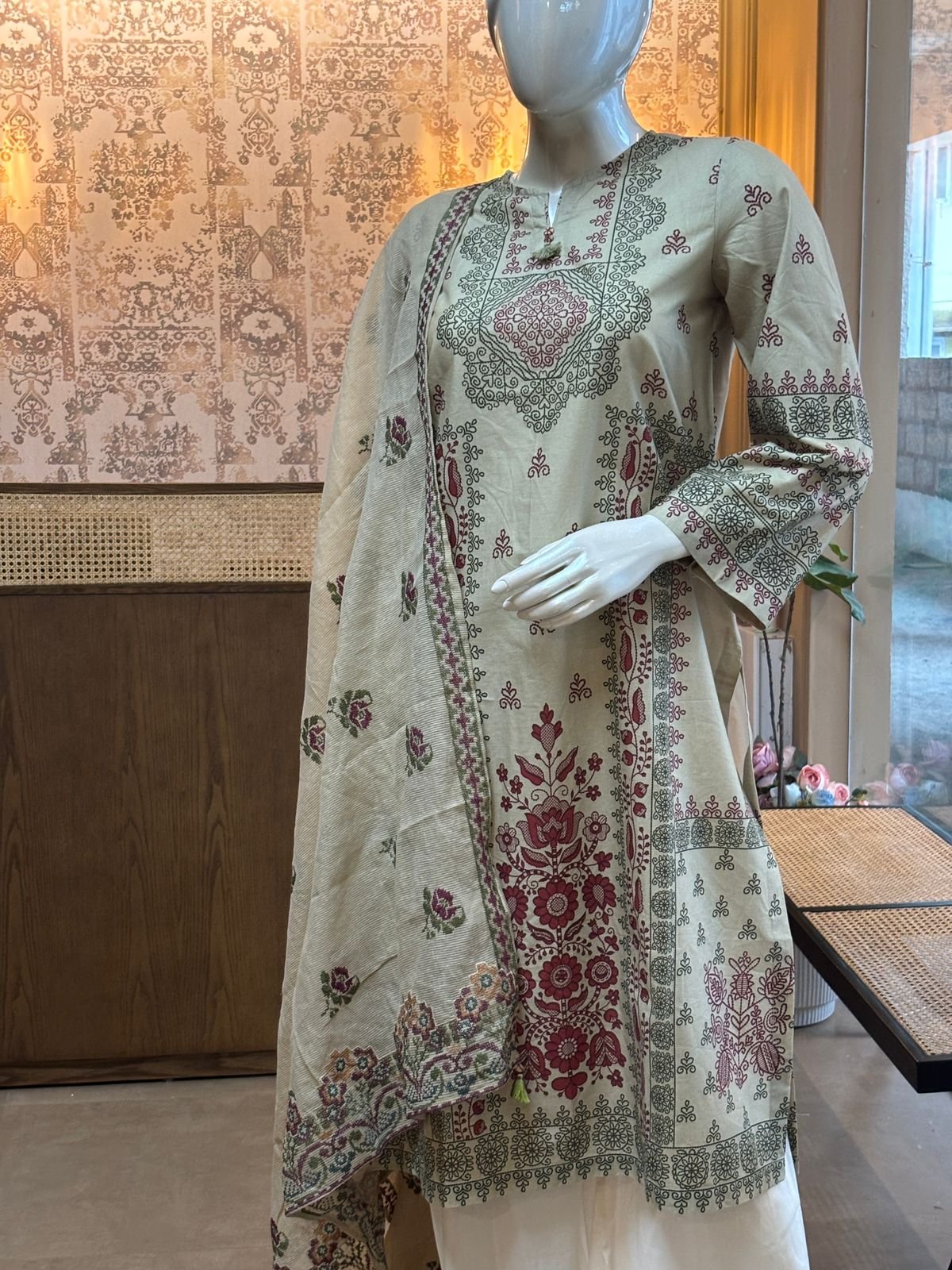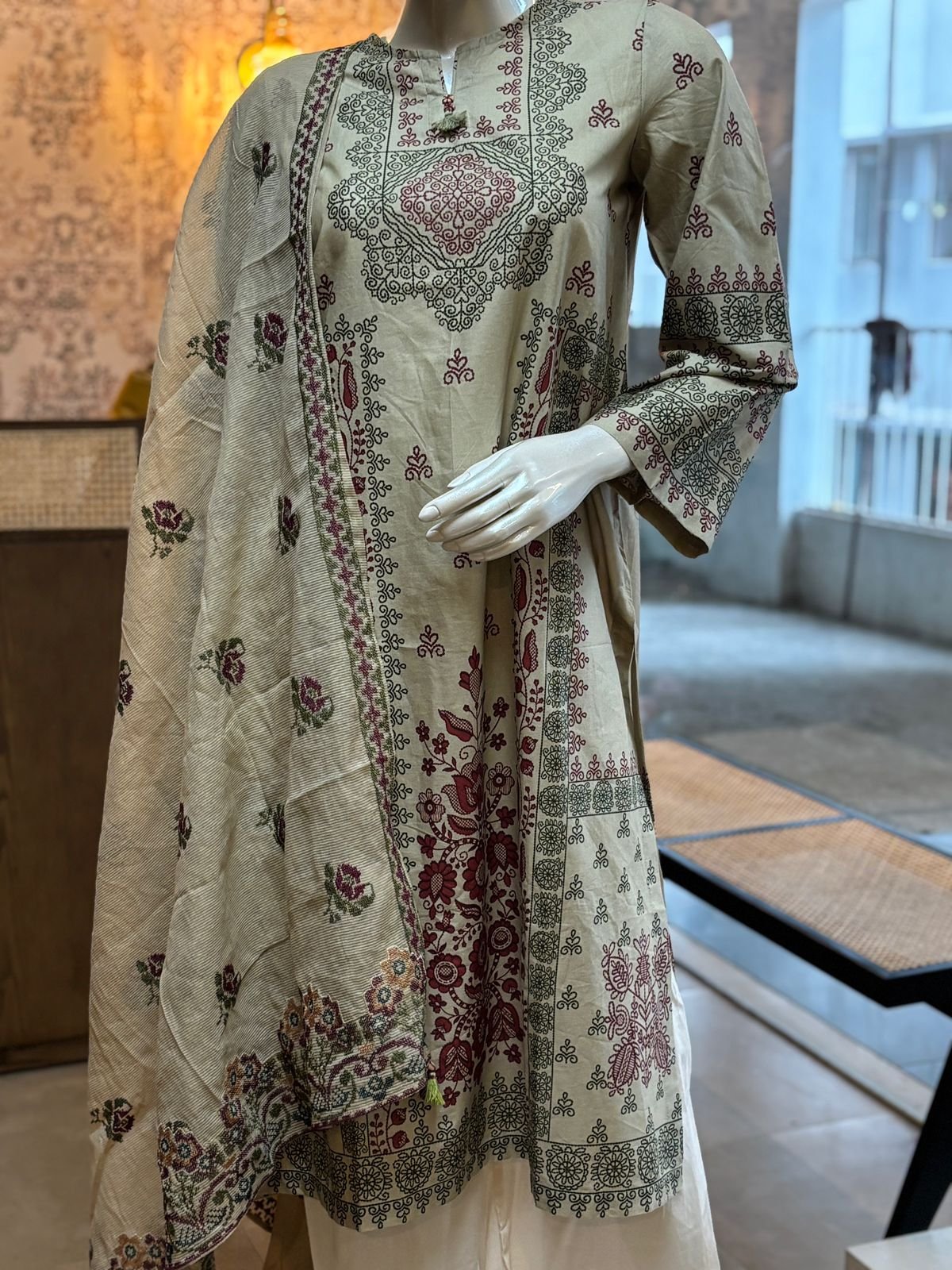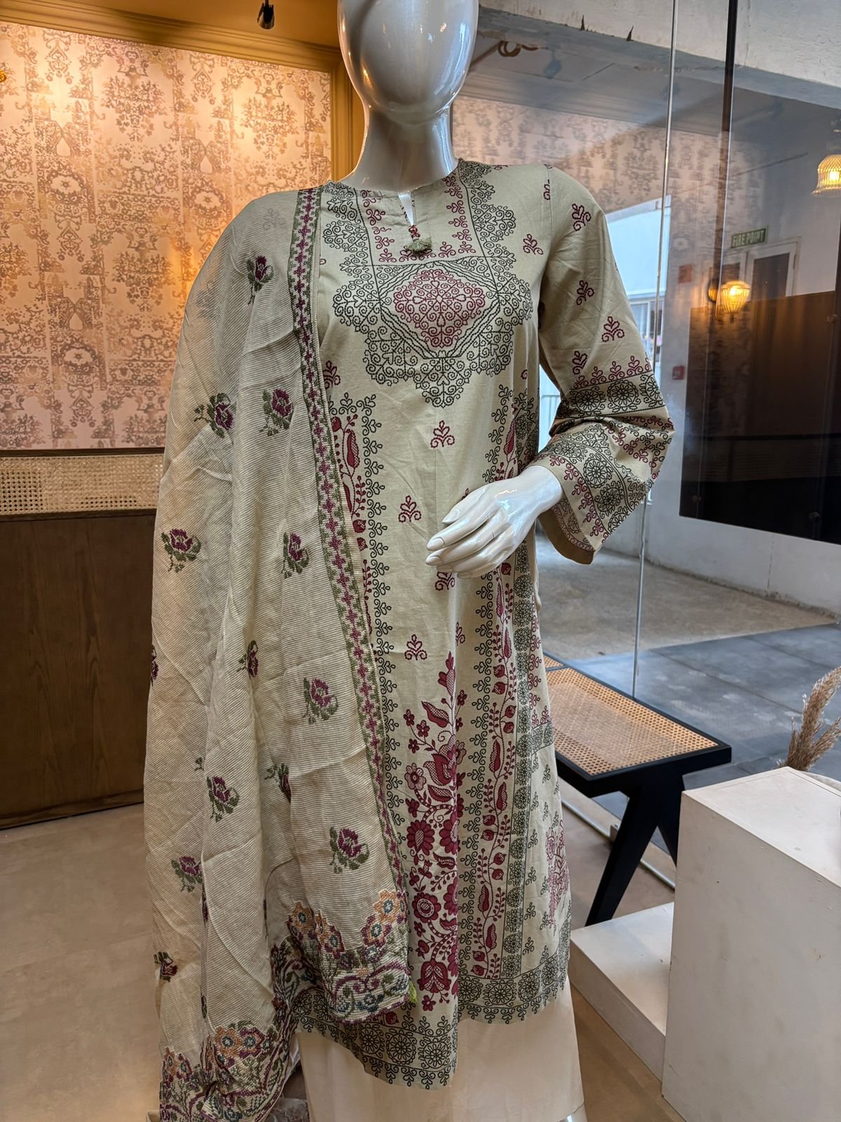 Printed Lawn Long top Paired with fully Embroidered Dupatta