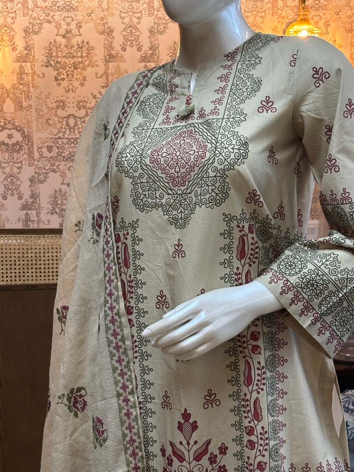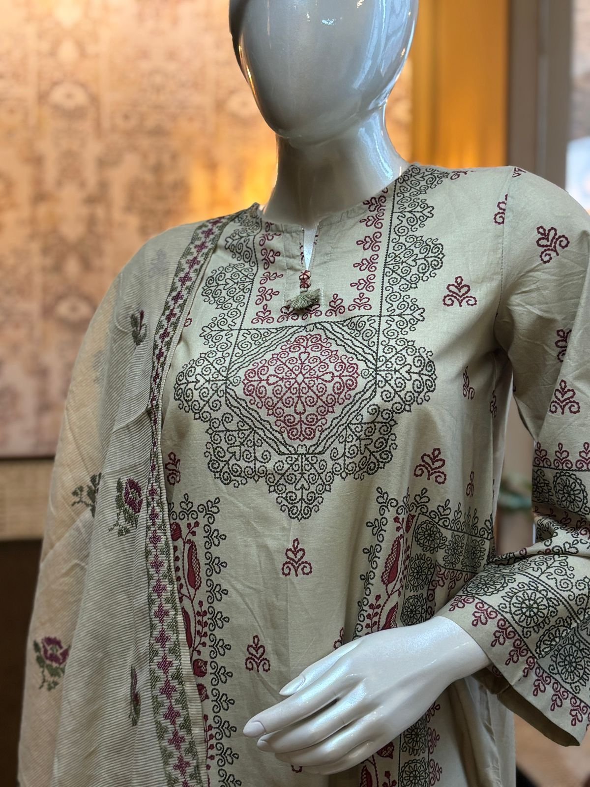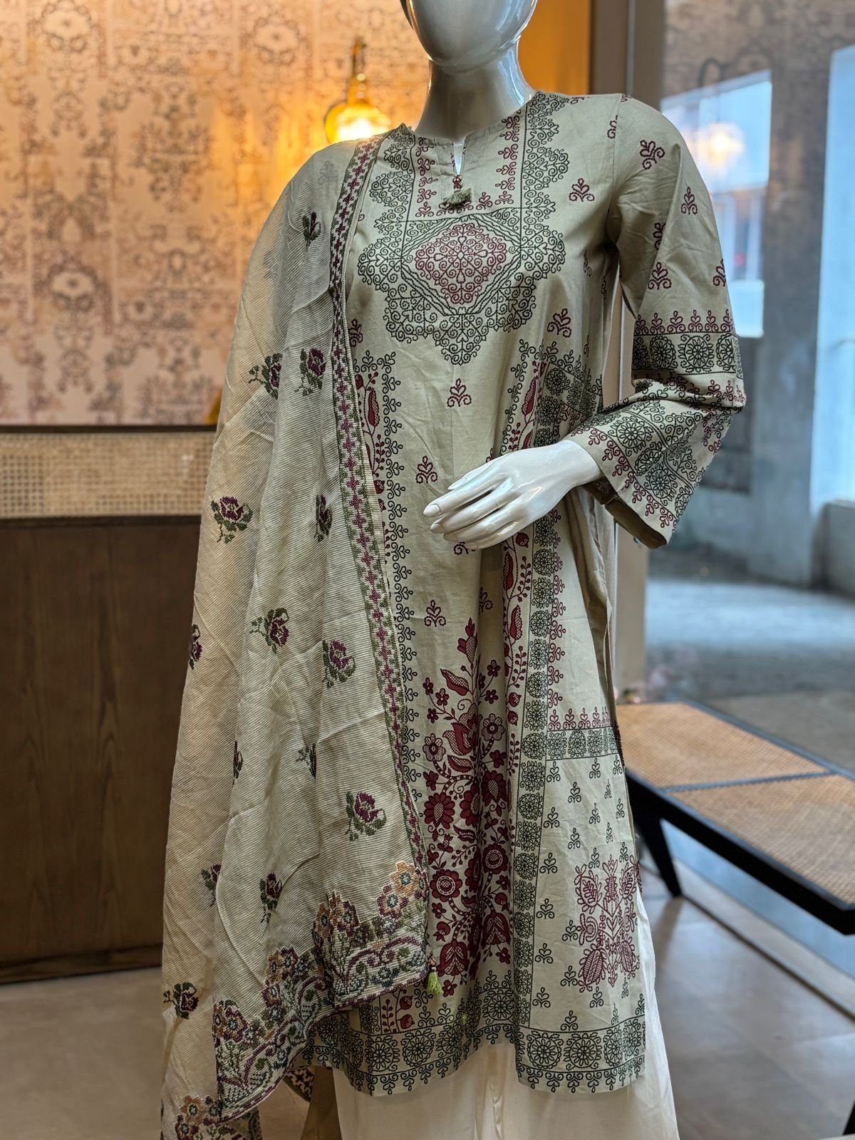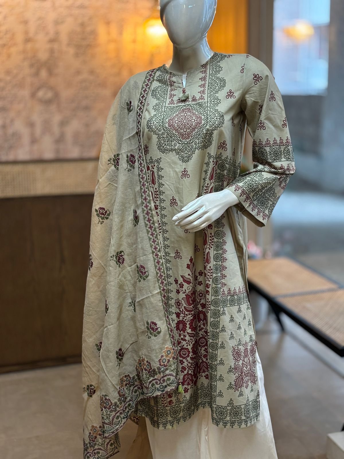 Printed Lawn Long top Paired with fully Embroidered Dupatta
