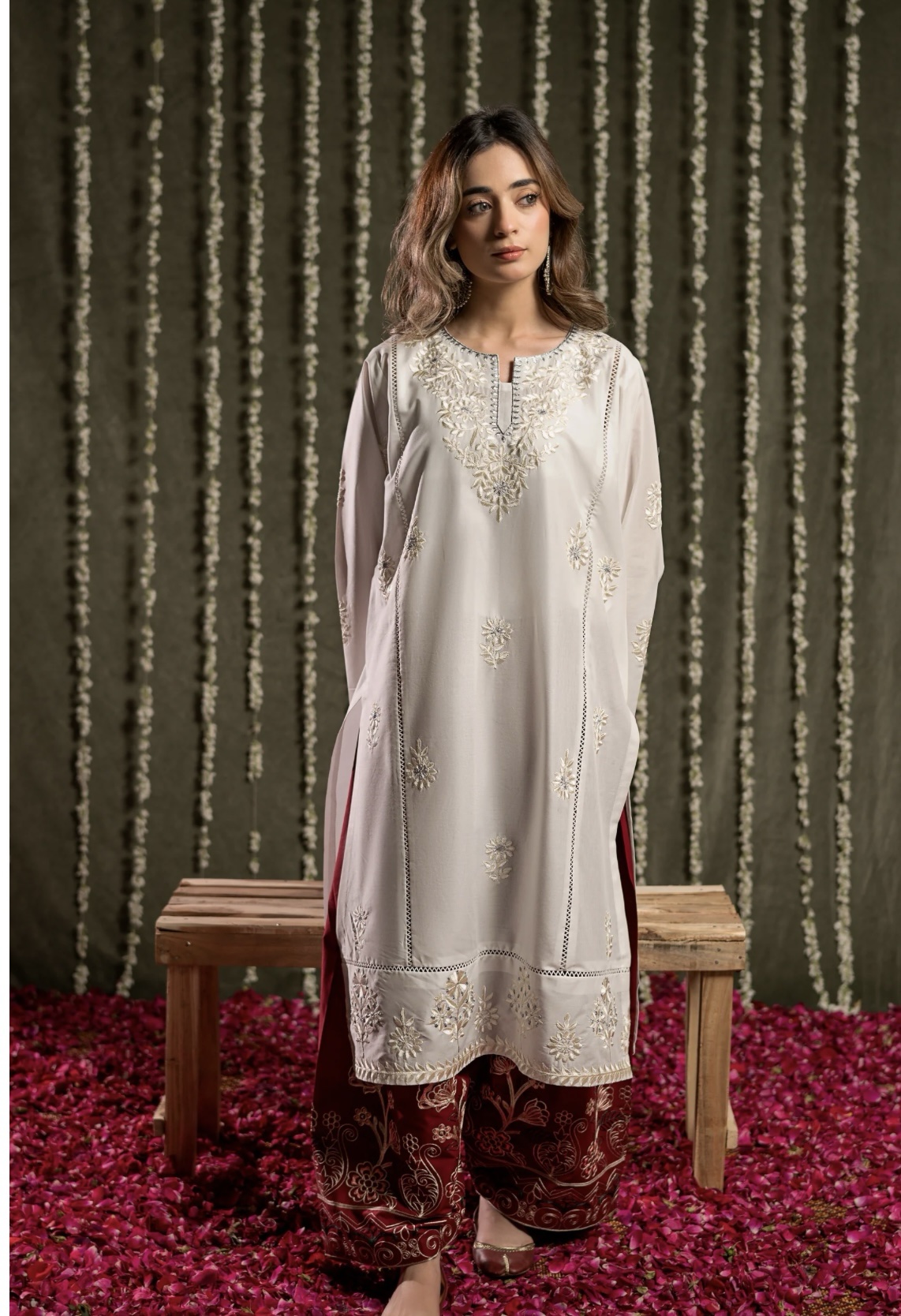 Embroidered Lawn Suit with Embroidered Lawn bottom.